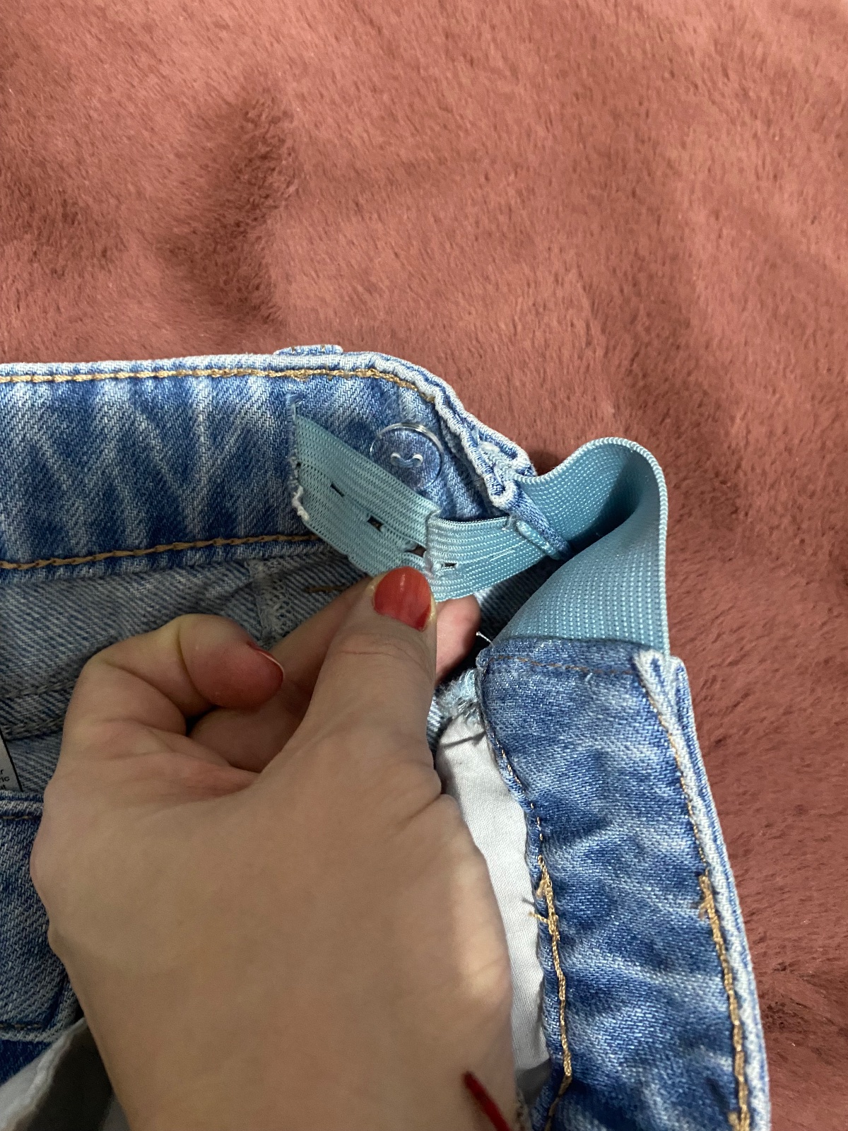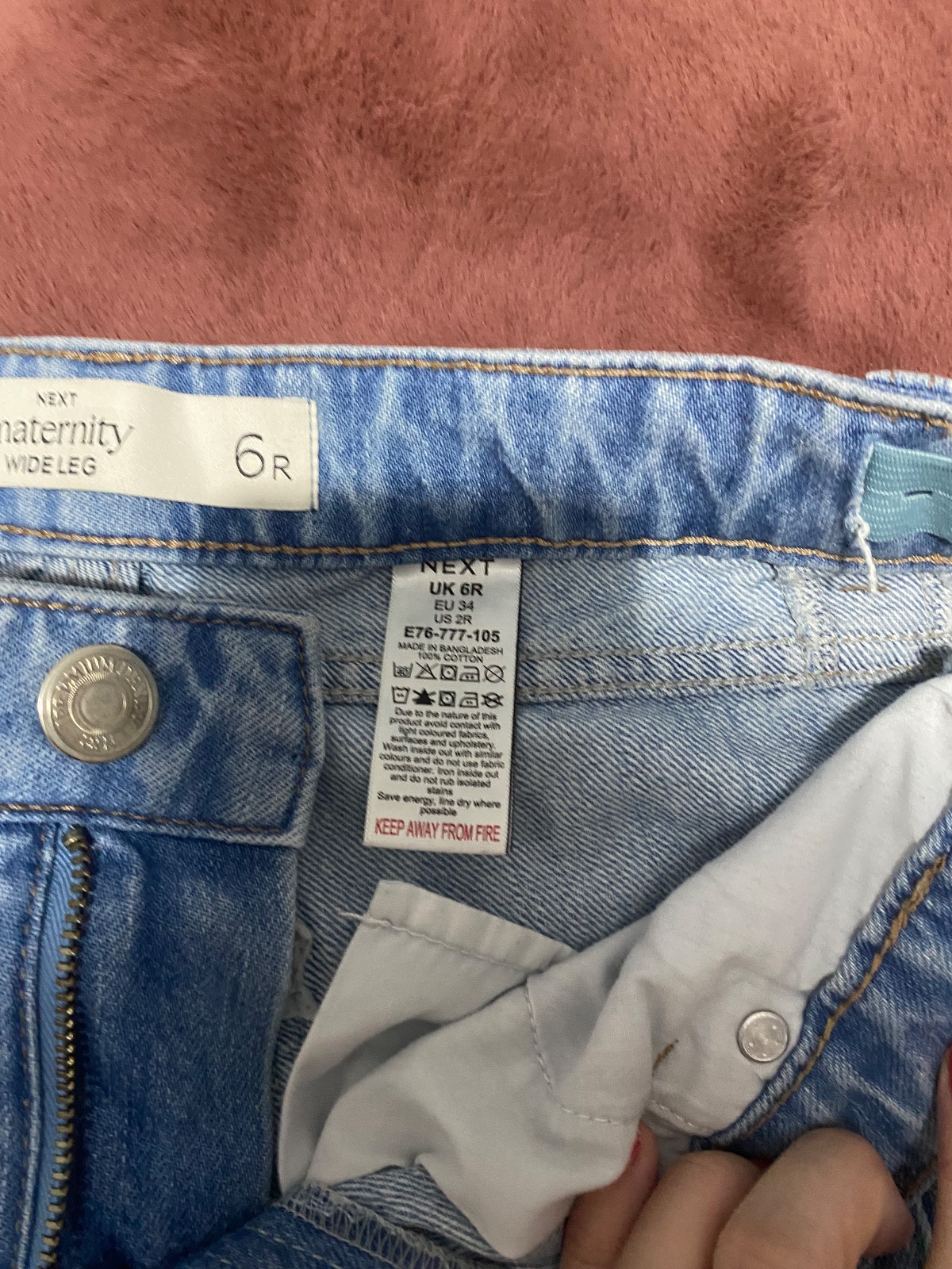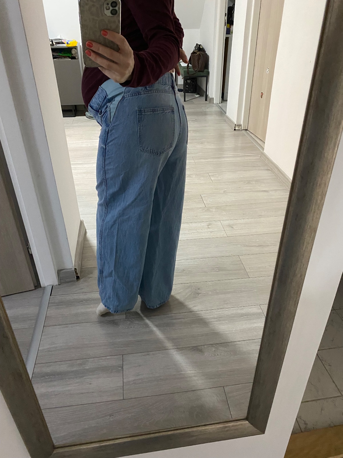 Tehotenské dzinsy . Malo používané sú skôr na chudsie postavy gumičkou sa dajú prispôsobiť . Sú skracovane dĺžka je : 97cm výška sedu spredu : 25cm, dlzka sedu vzadu 31cm
