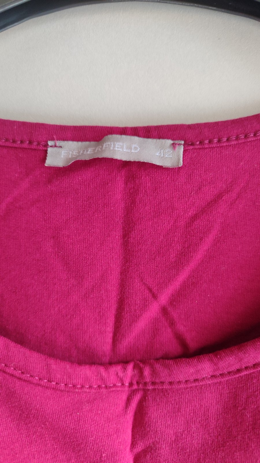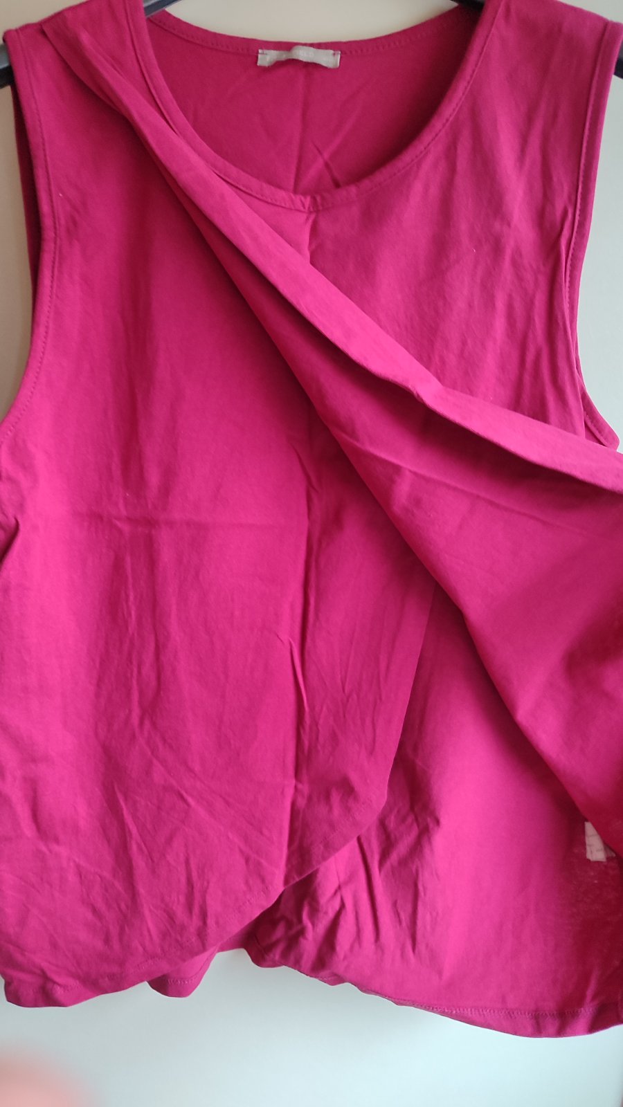 jednoduché bavlnené tričko,krásna malinovo ružová farba,málo nosené,kvalitné,jemne nariasené,top stav a kvalita,3/4 rukáv,šírka meraná pod pazuchou = 53 x 2 cm, dlžka celkom = 75 cm, dlžka od pazuc...