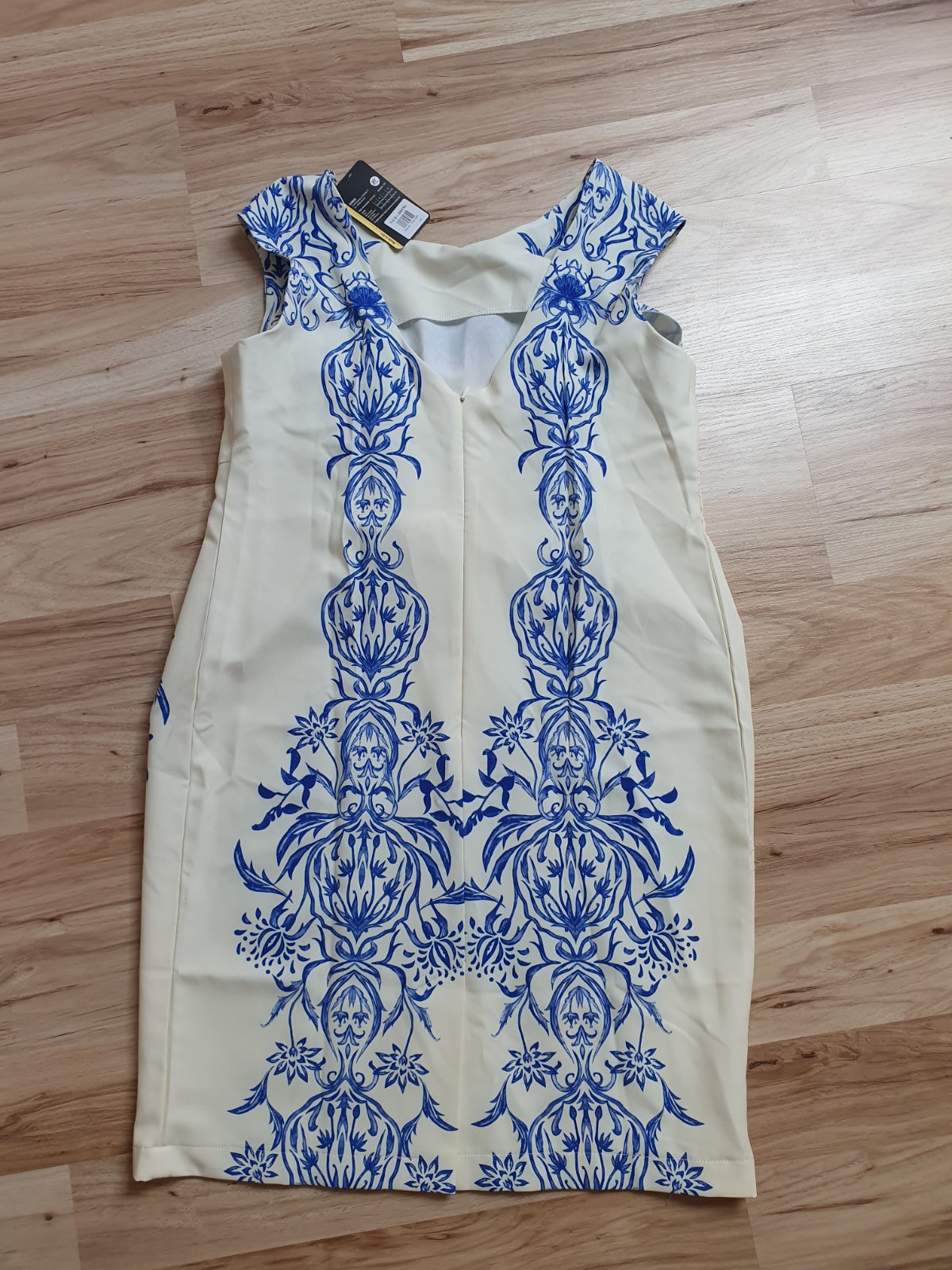 Šaty kupované na svadbu, len vyskúšané. Bola som už v 9tom mesiaci a nakoniec som sa rozhodla obliecť si iné, tieto mi už boli dosť tesné. Krajčírka mi ich rozšírila ako sa dalo, odfotila som, je trošku vidieť vypáranie, ale dá sa to znova vypárať a zašiť na pôvodnom mieste. Neprežehľovala som to, možno to nebude vidieť, keď sa prežehlí. Je ich škoda lebo sú naozaj pekné. Niekomu určite poslúžia. Cena je aj s poštovným.