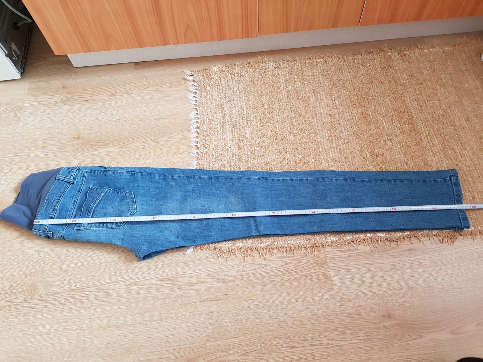 Tehotenské rifle veľmi málo nosené. Boli kupované v obchode s tehotenskou módou. V páse sa dajú regulovať gumičkou na gombičky. Prispôsobia sa postave,nakoľko sú mierne elastické.