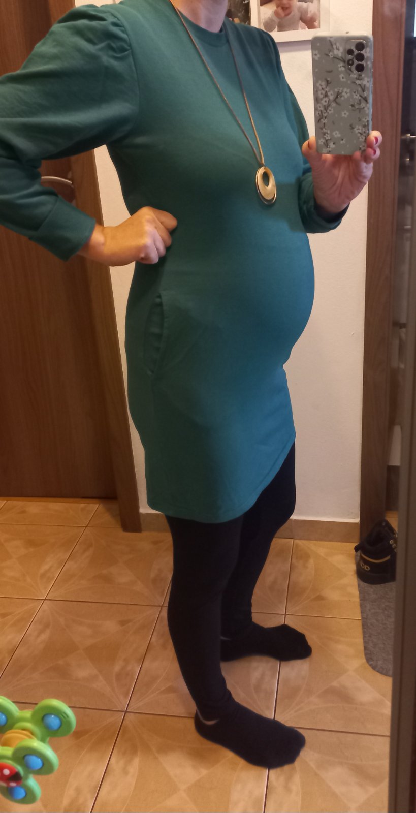 Krásne vzdušné šaty mala som ich oblečené 2x ,vhodne od začiatku až po koniec tehotenstva ,na foto som v 9 m ,veľkosť 40 , farba bezovo-cierne.Vhodne na každodenné aj príležitostne nosenie, ak sa d...