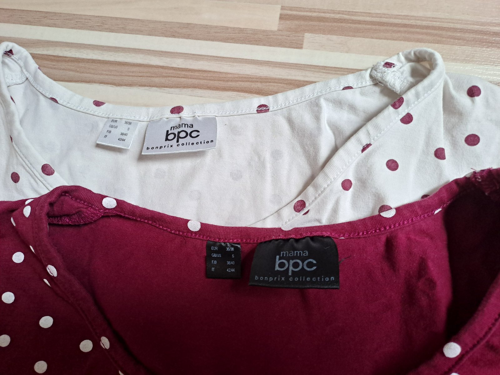 Tehotenske tricko bonprix biele a bordove, velkost 36/38. Cena jedneho 5 €, alebo za obe 8 €