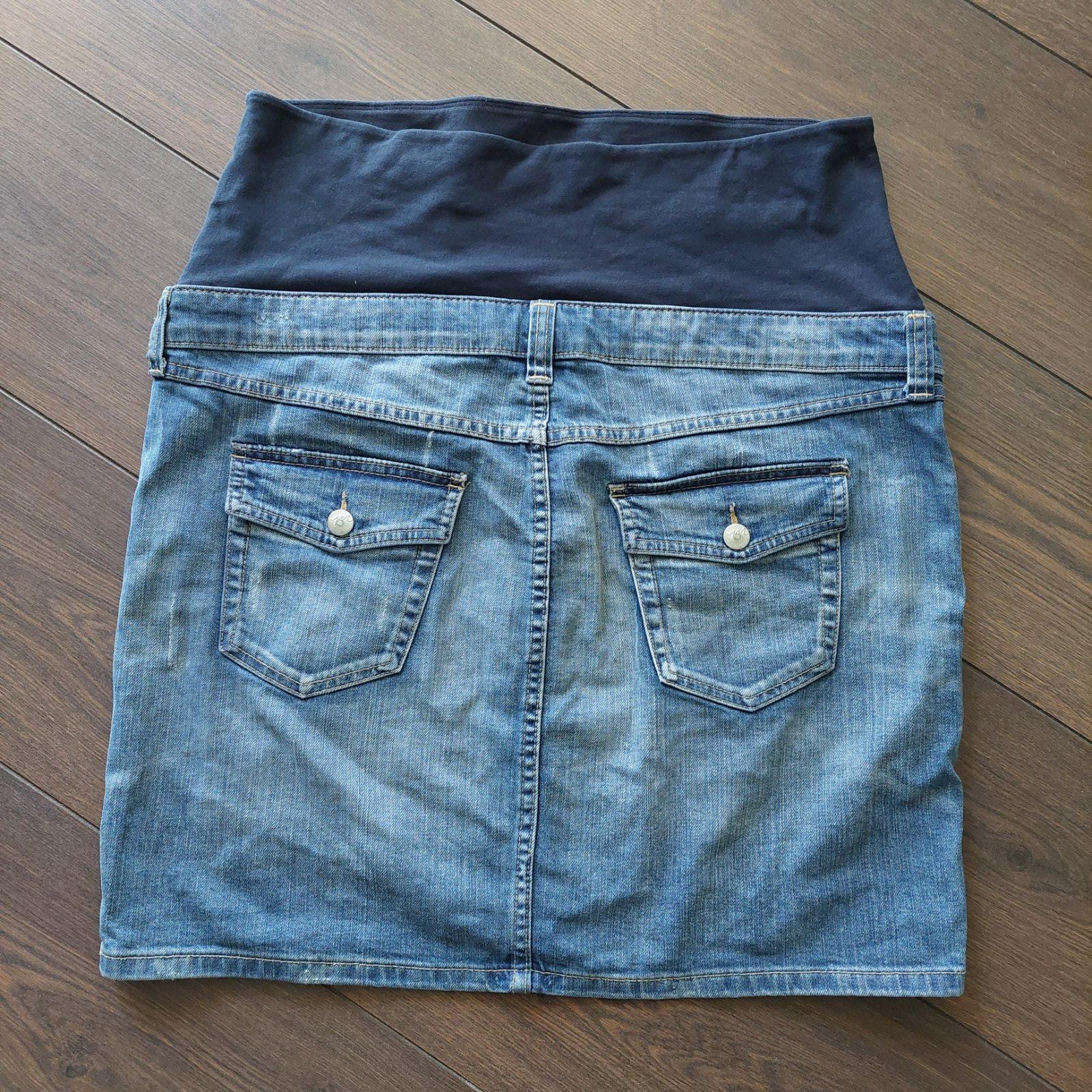 Tehotenská sukňa nad kolená. (Efekt "sprania, nosenia, vyšuchané,dierka") Perfektná na legíny. Hrubšia elastická riflovina. Regulovateľná v páse gumkou.