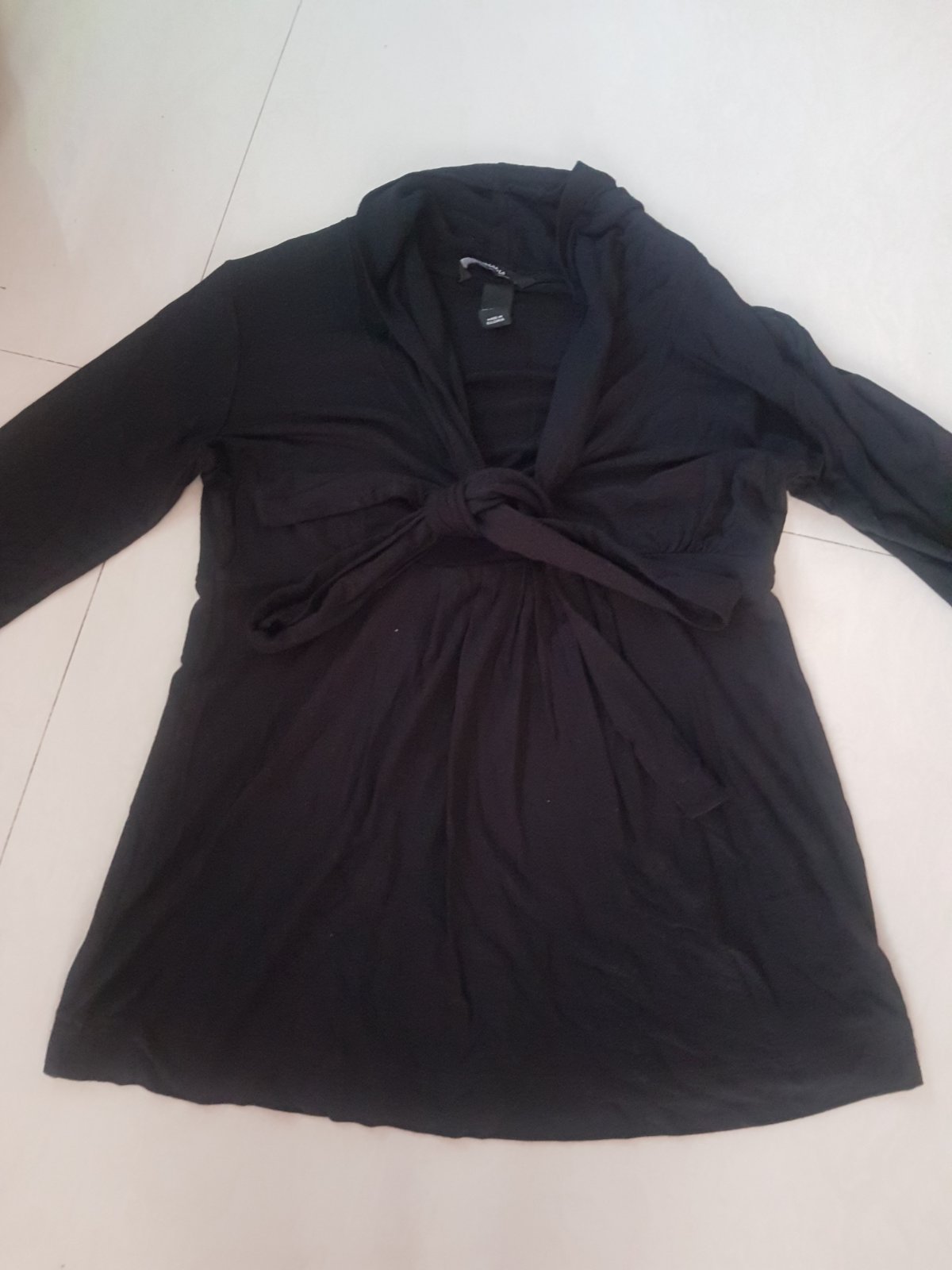 Velmi prijemne na telo bavlnene tricko s 3/4 rukávom a výstrihom, ktorý je zakončený mašľou.