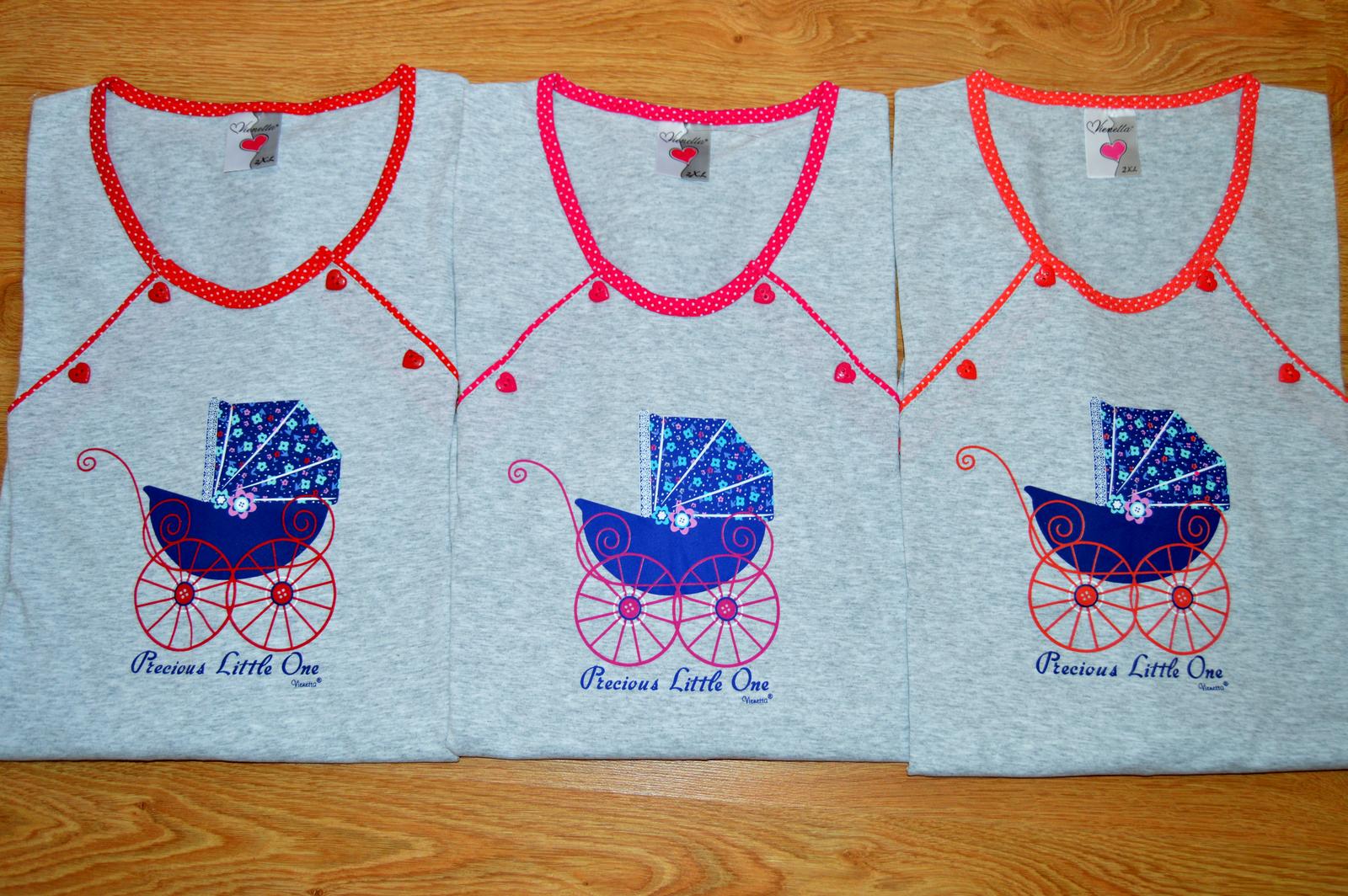 Dámska bavlnená materská nočná košeľa s krátkym rukávom Kočík. Nočnú košeľu zdobí potlač malého kočíka. Košeľa je určená na dojčenie, v oblasti pŕs má otvory zapnuté na gombíky. Materská košeľa je vďaka voľnejšiemu strihu vhodná aj v tehotenstve a do pôrodnice. Bavlnený materiál je poddajný a jemný na dotyk.