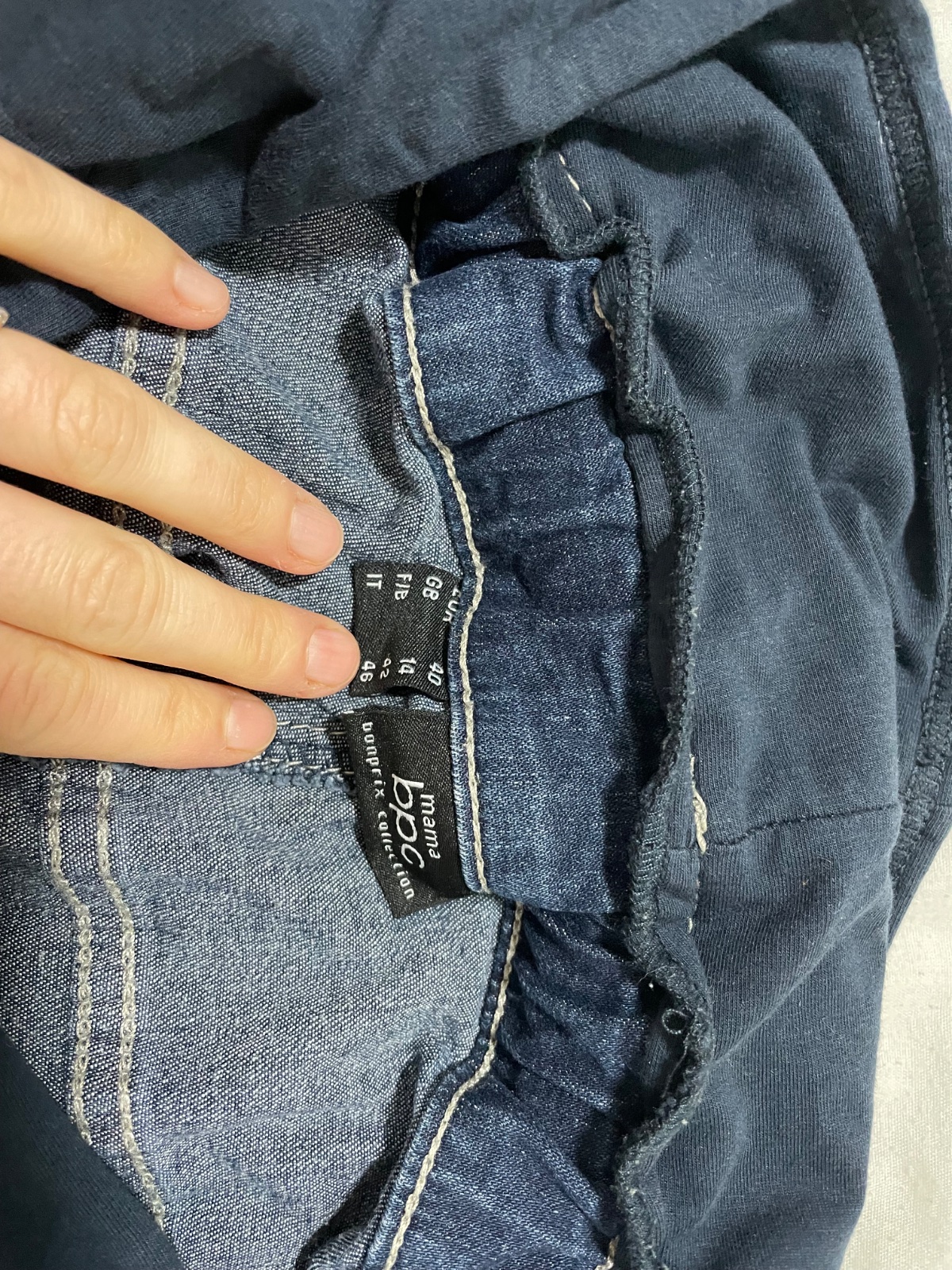 Predam tehotenske rifle, kupovane v bonprixe. Maju gumicku nad bruskom aj pod bruskom, takze sa krasne prisposobia pocas celeho tehotenstva.