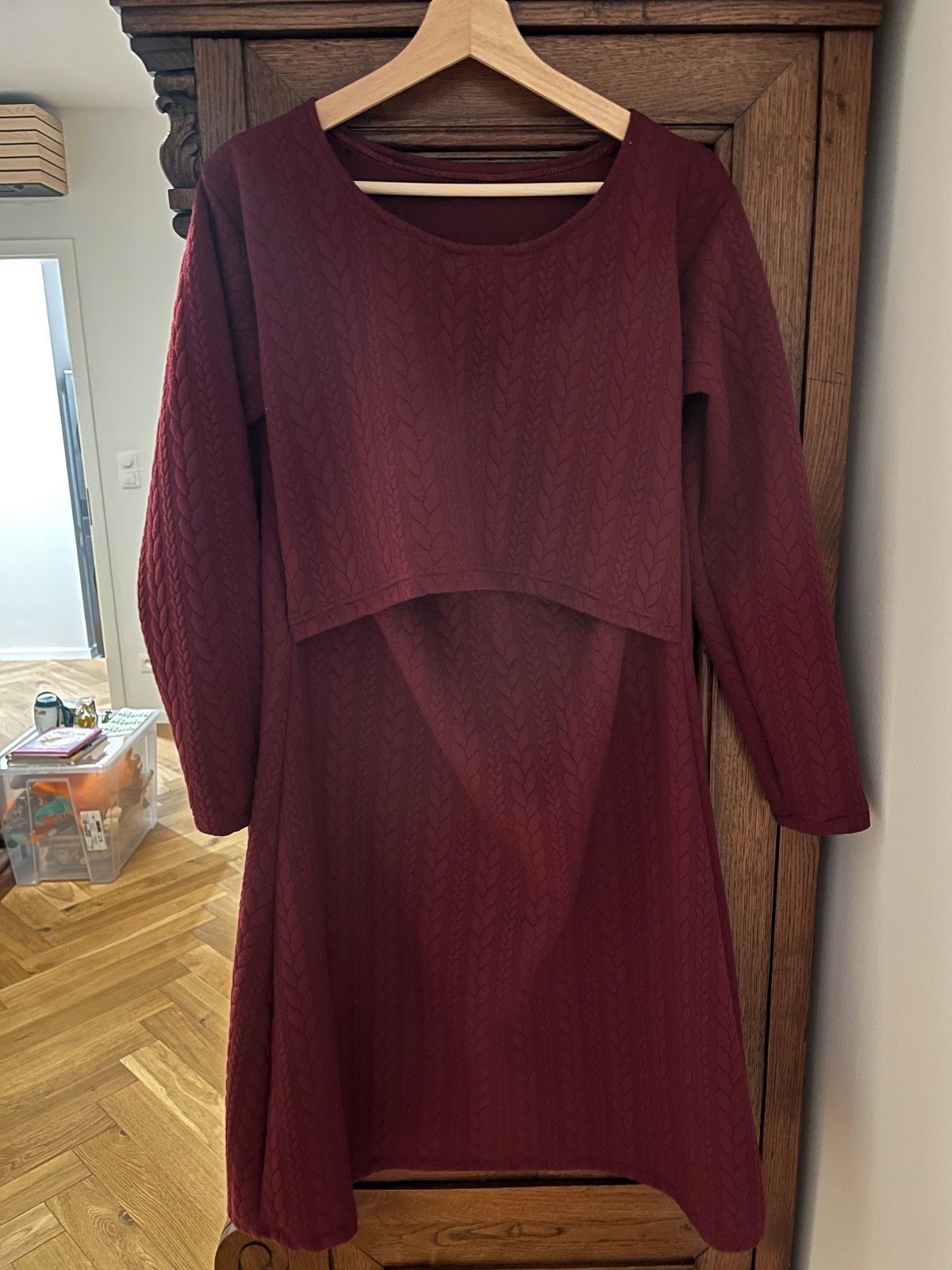 Predám bordové šaty na dojčenie značky Tulipán, veľkosť L (sedí). Šaty sú pár krát oblečené, mierne to vidno, ale stále krásne, bez poškodenia a fľakov. Strih sukne je do A.