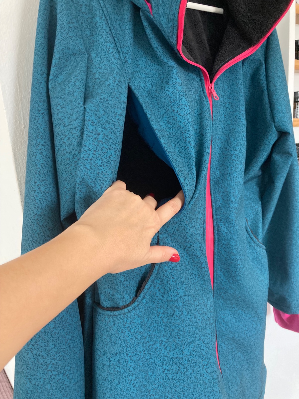 Na bunde su magnetky na kojenie, velmi prakticke aj ked dietatko zrovna nie je v nosici. Nemusi mamicka na kojenie rozopinat bundu.