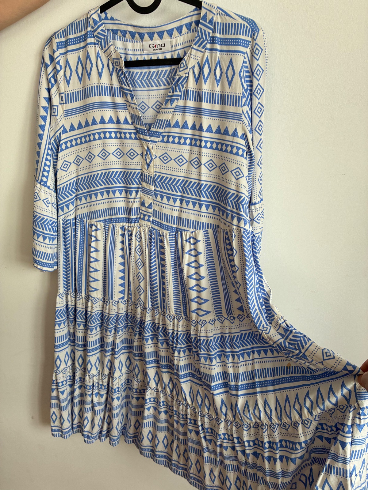 Šaty v štýle Boho, ale ja som ich nosila len ako tehotenské. Veľkosť píše 34/36. Ja som 38 a nosila som ich cele tehotenstvo. Sú dostatočne široké.
