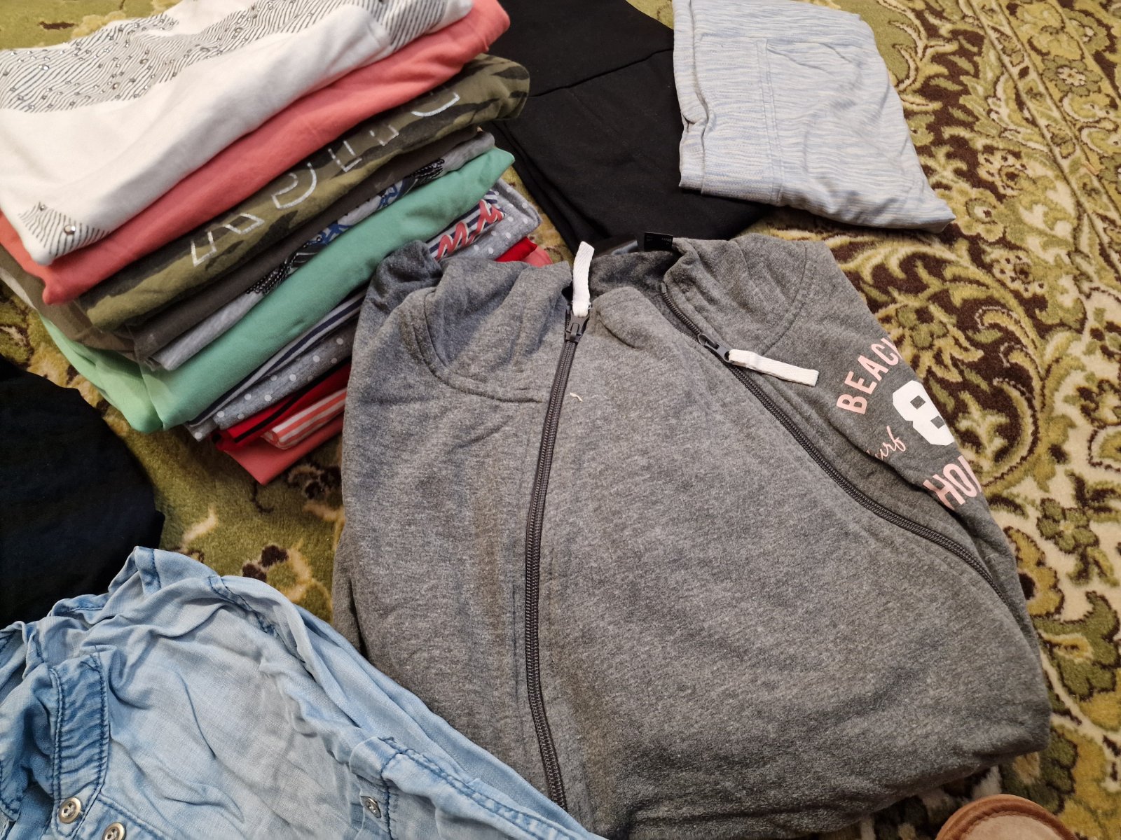 V baliku su hlavne tricka s kratkym. 1 ks s dlhym rukavom. Nocne kosele na dojcenie, dlhe makke rifle, kratasy, viacero legin, mikina 1,