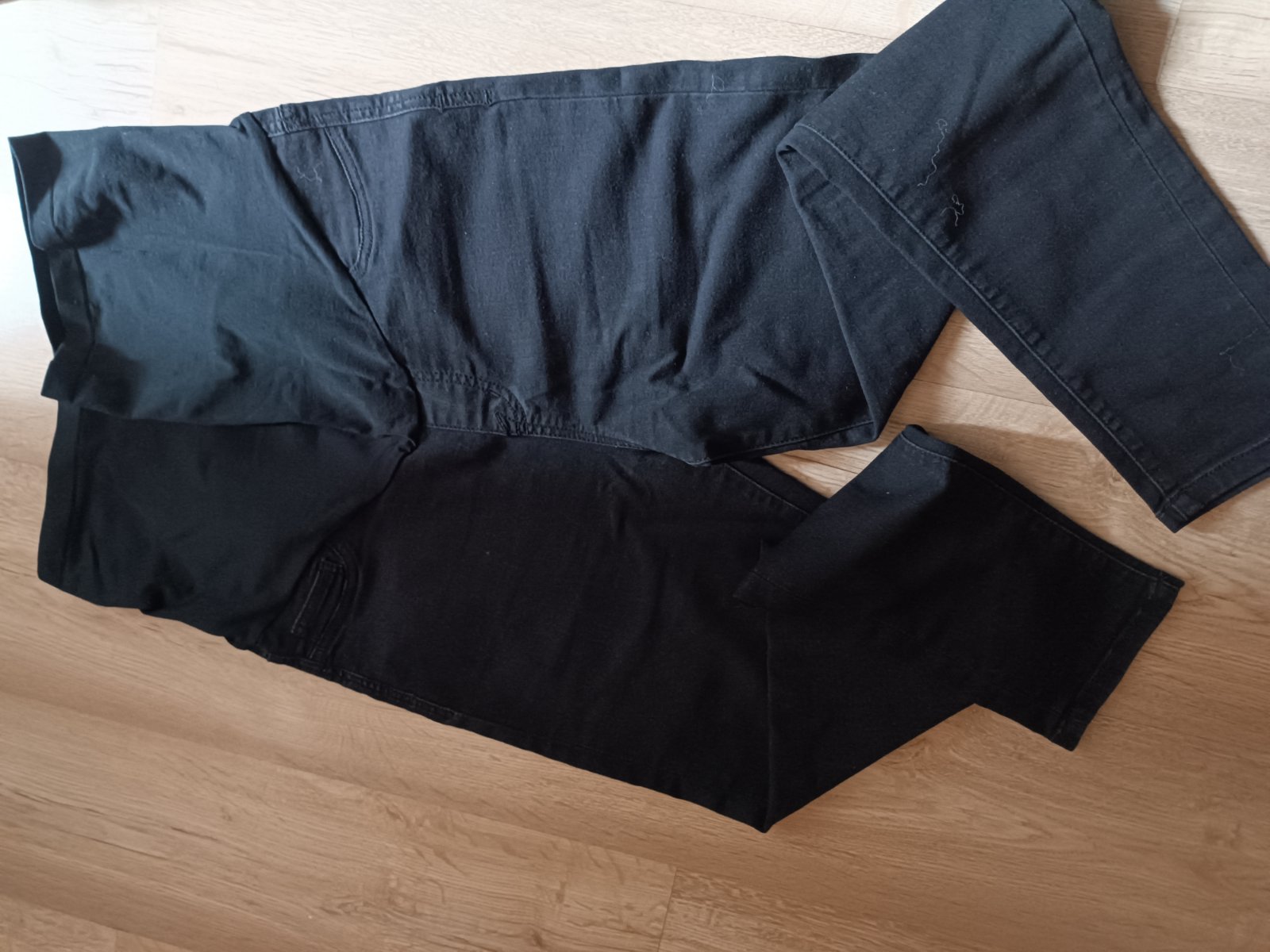 Tehotenské elastické rifle čiernej farby, píšu veľkosť L ale sedí na M. Pekná čierna farba, nevyblednuté, fotka skresľuje.. v pripade zaujmu poslem viac foto.. Mám v ponuke aj iné tehotenske oblece...