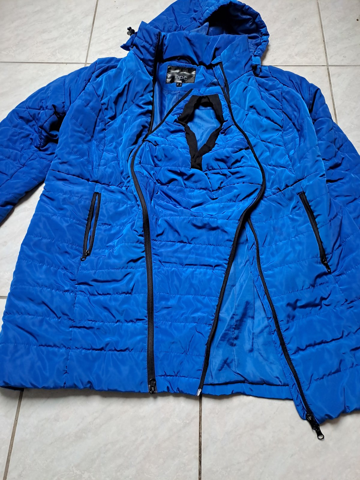 Zimna bunda z bonprixu tehotenská - da sa po bokoch rozsirit, ale da sa aj vlozit nosicska vlozka pri noseni babatka. Velkost 42/44, predlzena pod zadok. Nosena, stav dobry, este posluzi :-)