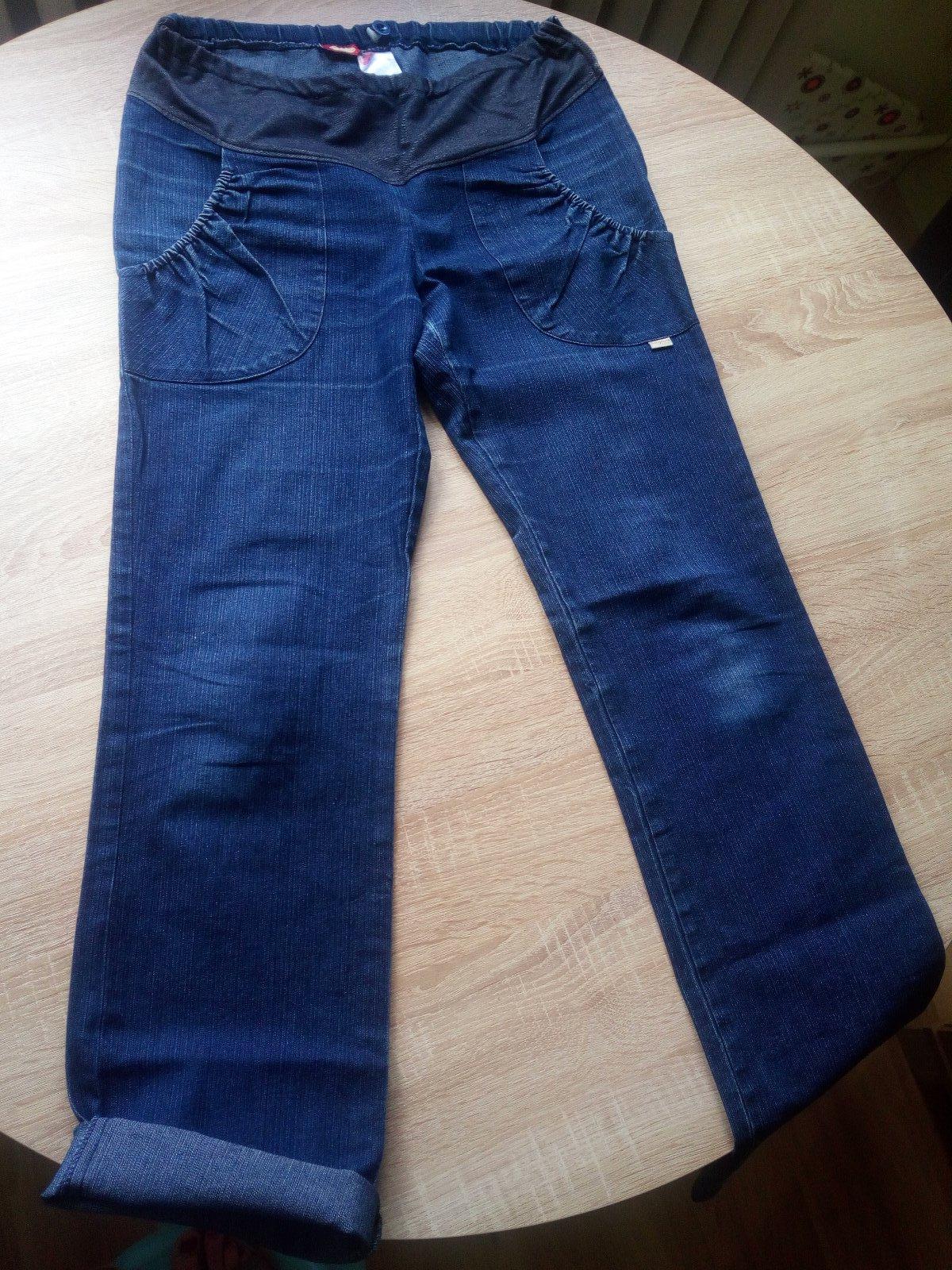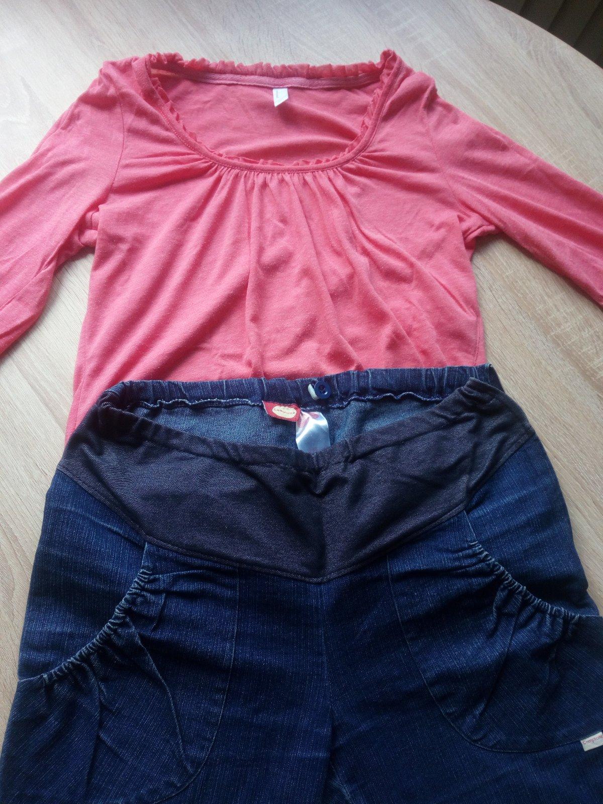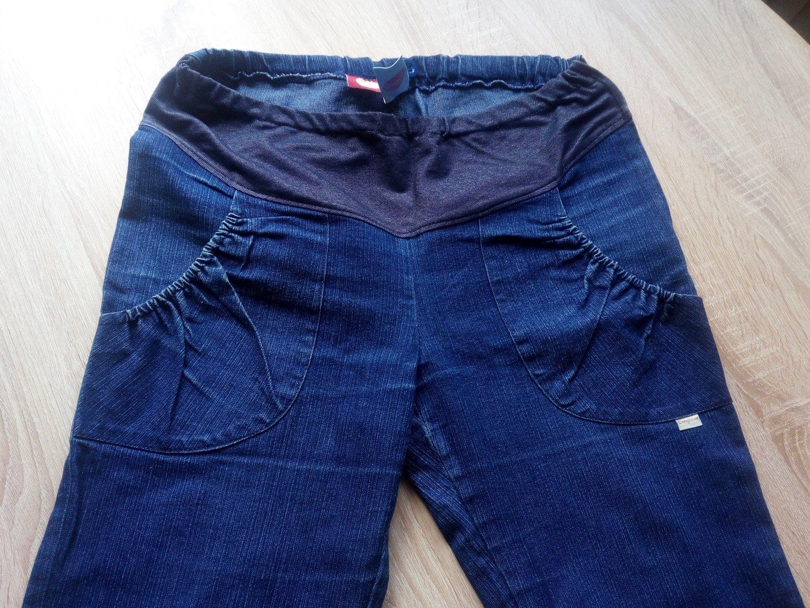Tehotenské rifle bočný m zapínaním na zips a posuvnou gumičkou v páse. Dajú sa vyhnúť na 7/8 ovú prípadne 3/4 ovú dĺžku. Celková dĺžka je 104 cm. V prípade záujmu pošlem ďalšie rozmery. K rifliam pribalím ľahkú blúzku / tričko s 3/4 rukávmi.