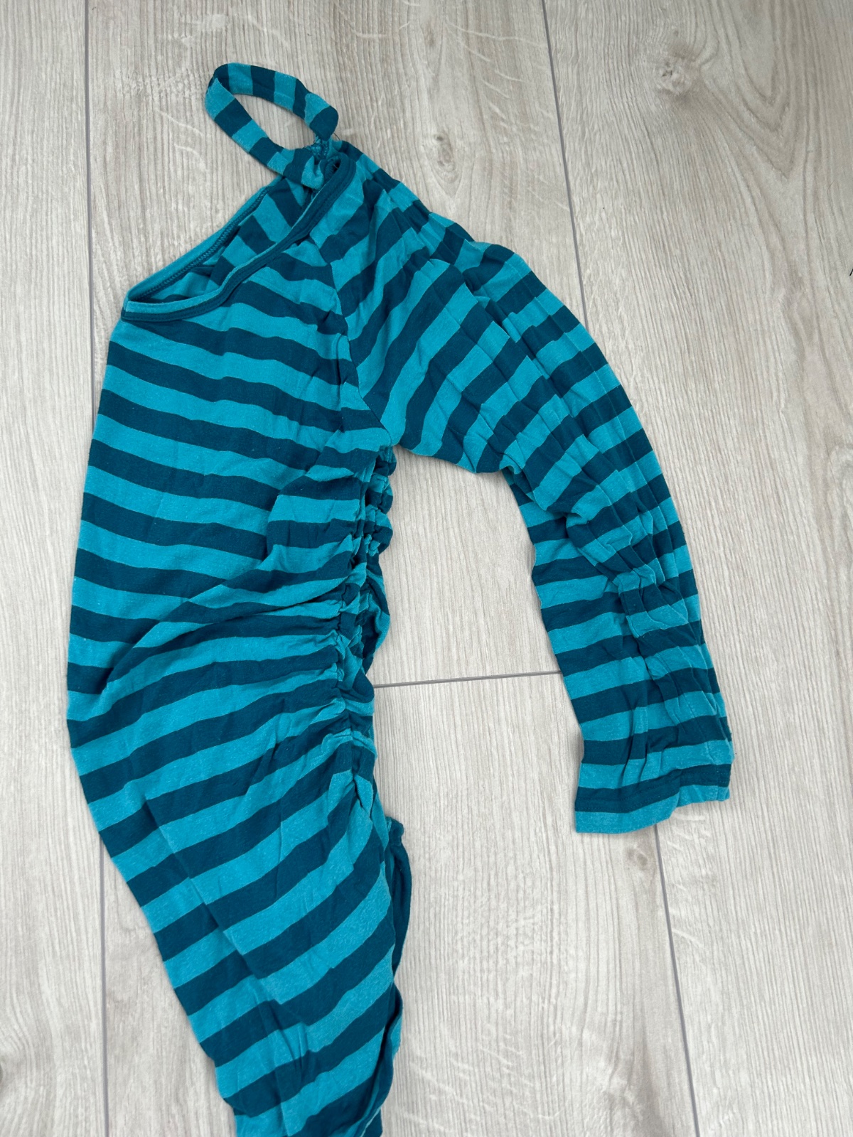 - Modro-biele pásikované tričko dlhý rukáv s odhaleným chrbtom