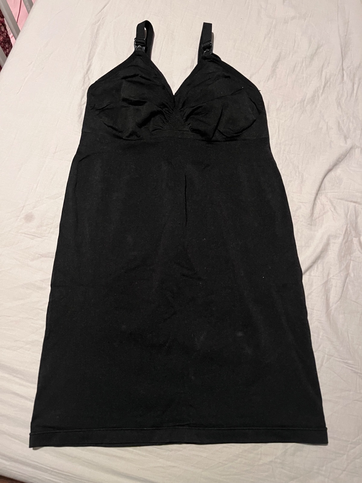 - tehotenske šaty čierne, elastický material , pekna čierna, výstrih na 4 gombíky, na brušku prešité po bokoch , dl 106, prsia 46 +