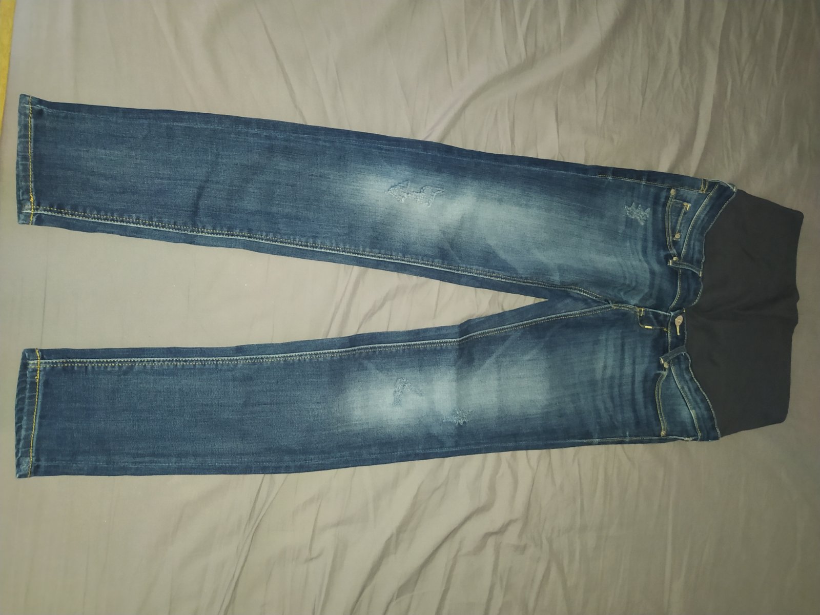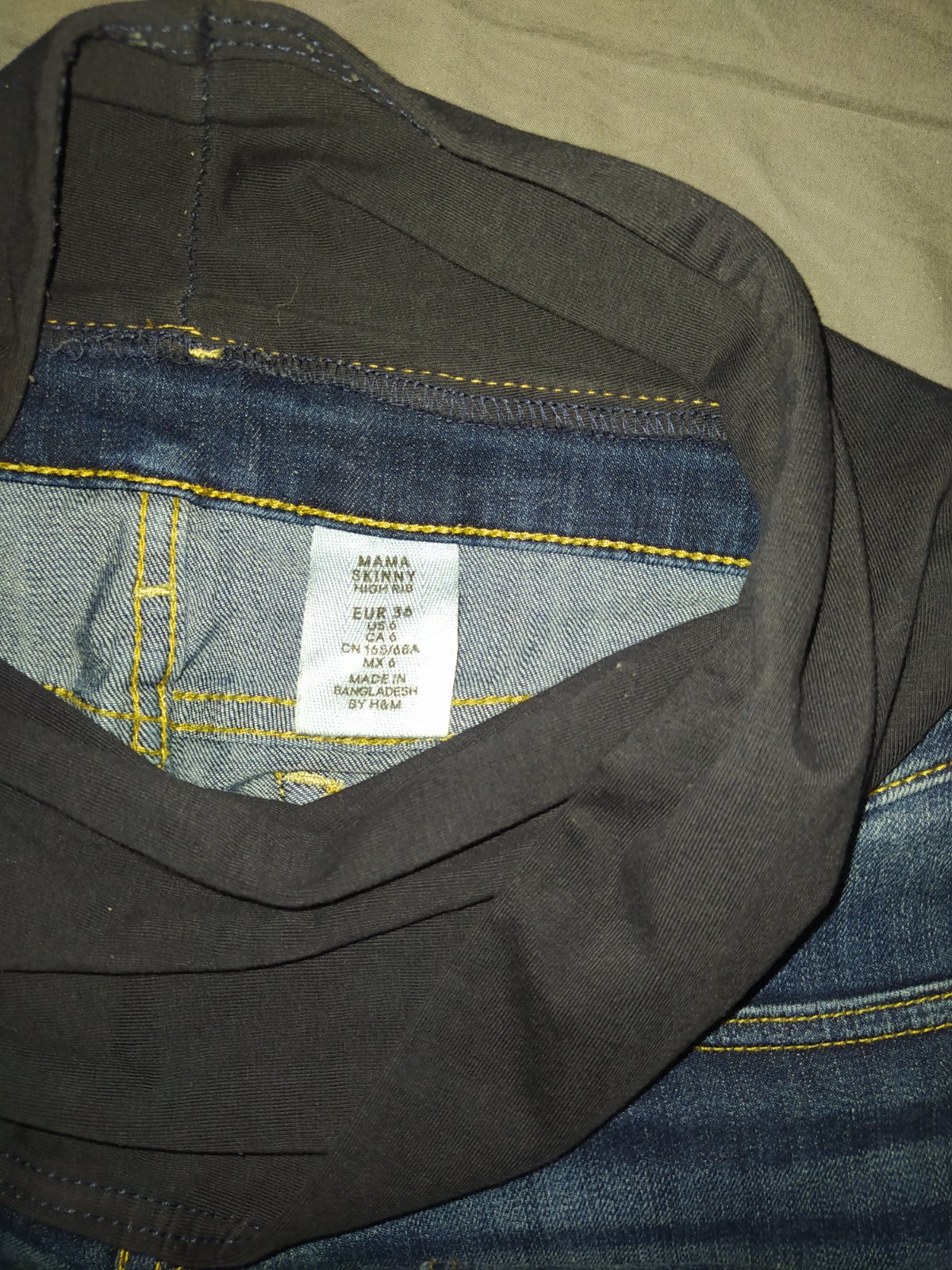 Tehotenské rifle H&M, 36. Malá dierka na nohe (viď foto) čo veľmi ani nevidieť, len keď hladáme, preto som to ani neriešila, cena zohladnená