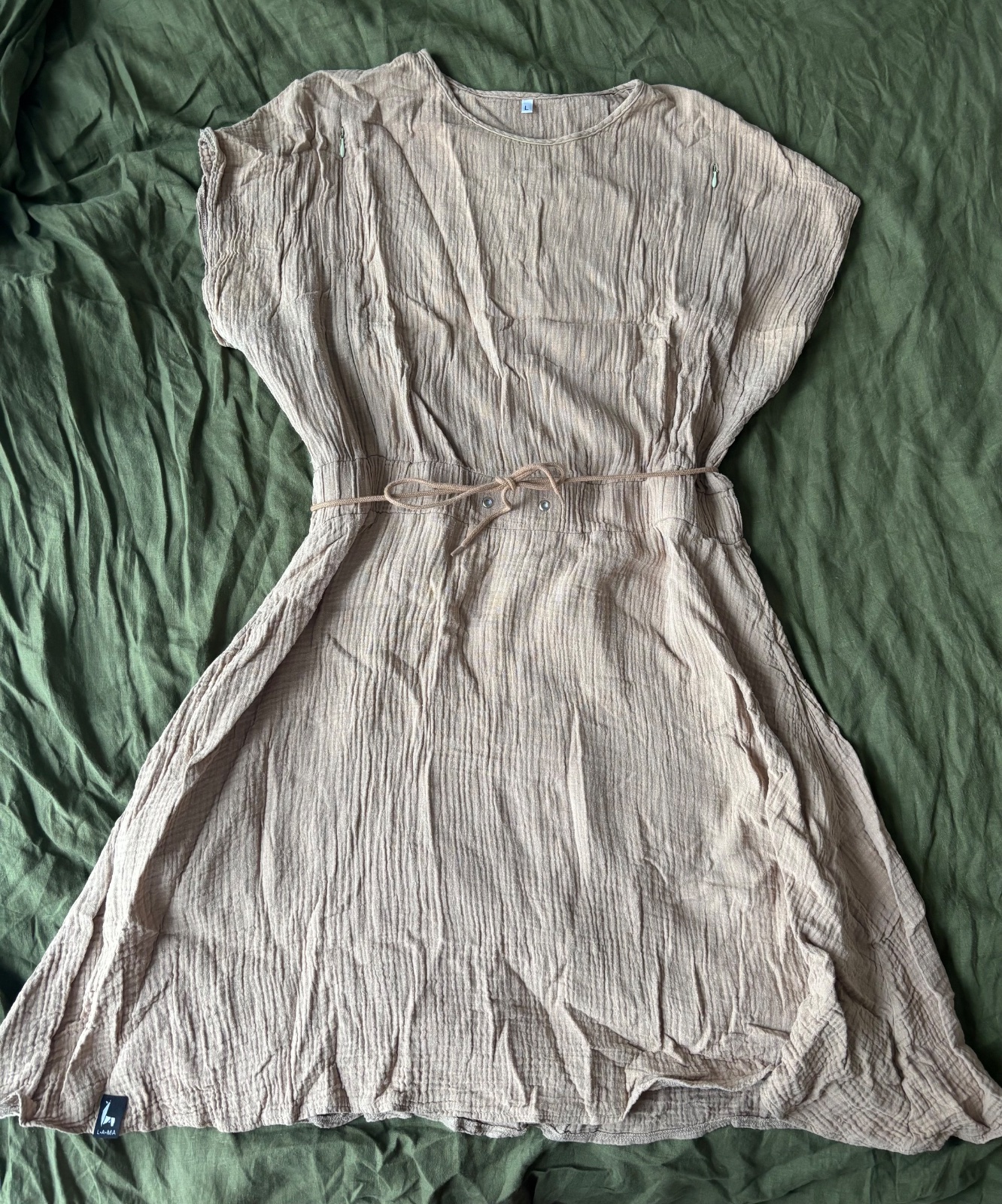 Veľkosť odhadom: L Mat.: ľan vo väčšej miere – vzdušný. Šaty sú rovného strihu, sú vhodné aj pre budúce mamičky, vo veľmi dobrom stave, bez fľaku a poškodení. Sú málo nosené, z príjemného a tenkéh...