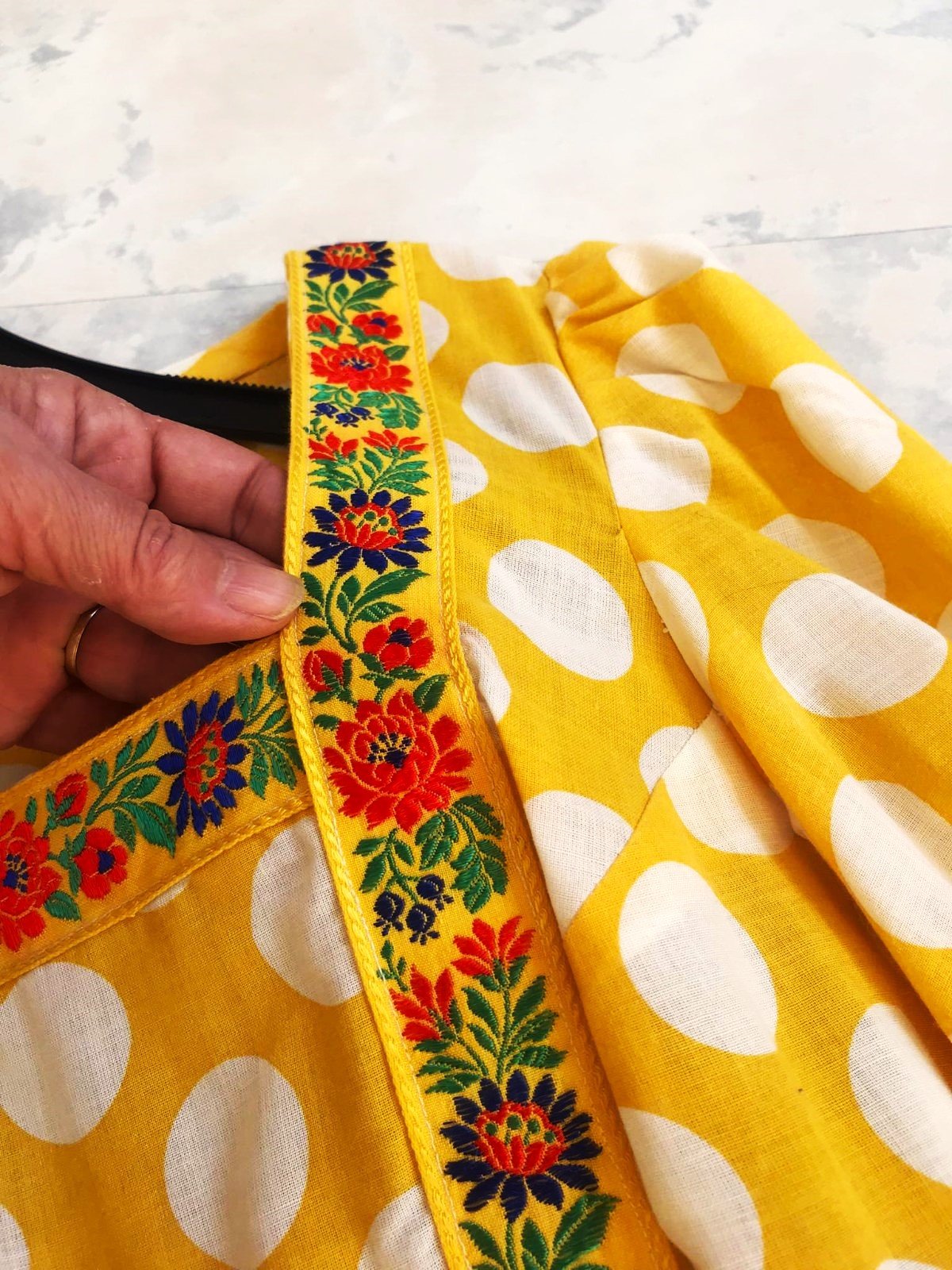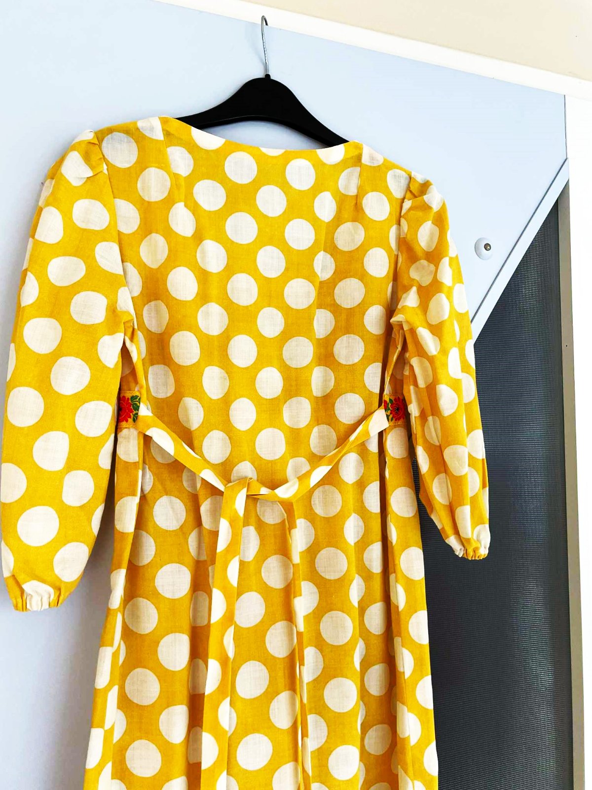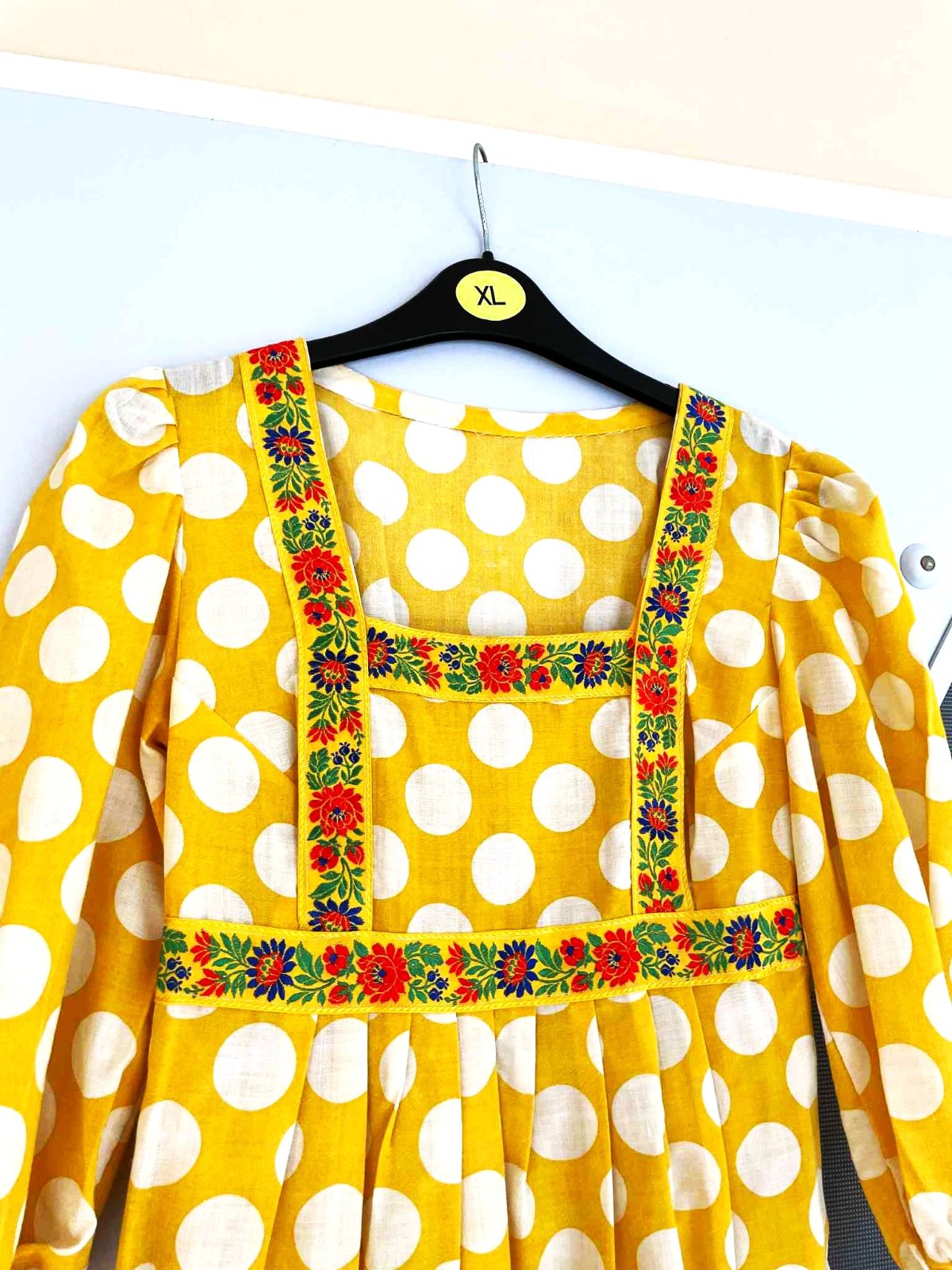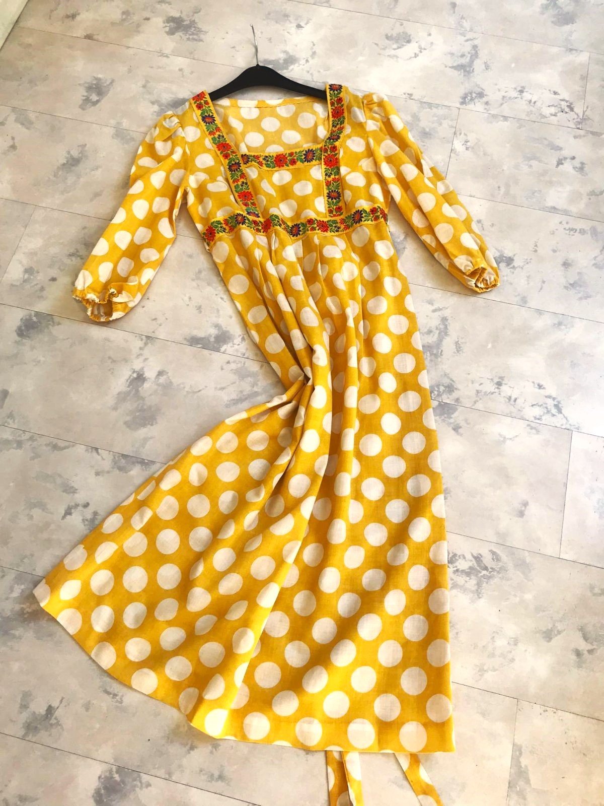 min. nosené zaujímavé plátenné šaty s folkloristickým motívom (dá sa aj odpárať ),jemne nazberkané pod sedlom,vzadu na uväzovanie - čím sa pekne vytvarujú,3/4 rukávy jemne nariasené,do gumičky, vhodné aj v a po tehotenstve,pekne zakryjú nedostatky,v top stave,100% vzdušná bavlna,dlžka celkom = 110 cm, dlžka meraná na bokoch od pazuchy smerom dolu =88 cm,šírka meraná pod pazuchou = 44 - 45 x 2 cm,rukáv = 45 cm