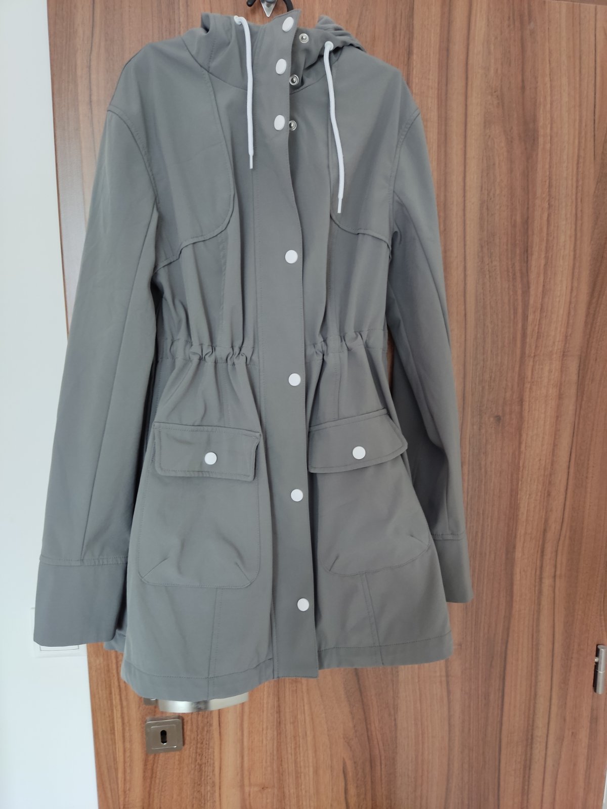 Prechodná bunda ale nosila som ju aj v zime. V dobrom stave, má deravé jedno vrecko. Po bokoch sú zipsy takže sa dá prispôsobiť aj pre väčšie bruško.