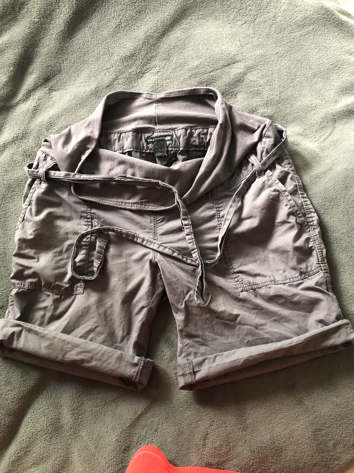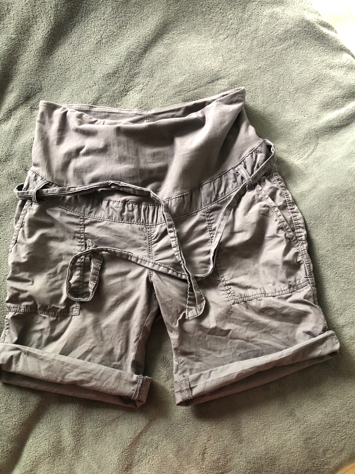 Tehotenske sortky z Brendonu. Nosene prilezitostne asi 2 mesiace. Povodna cena 40 eur. Velmi pohodlne. Meriam 170 cm a v tom case co som ich nosila som vazila nieco medzi 65-70 kg. Velmi rada priba...