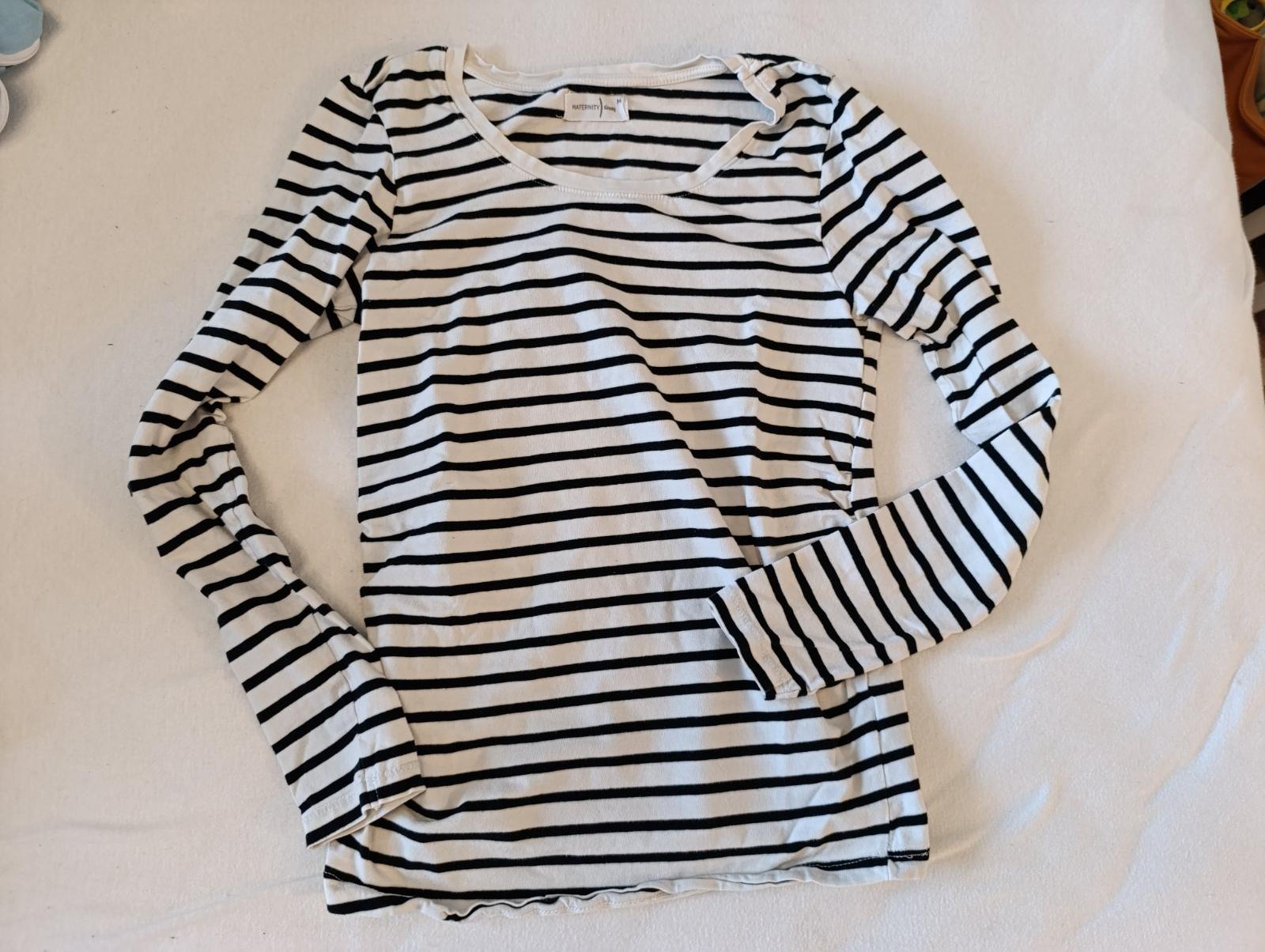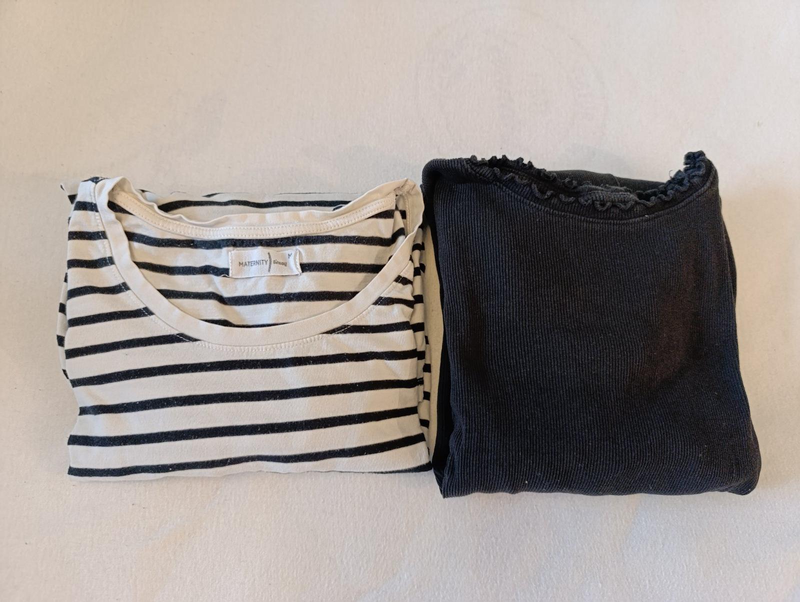 Málo nosené tričká s dlhým rukávom. Jedno pásikavé čiernobiele a druhé čierne vrubkované. Cena spolu za obidve.