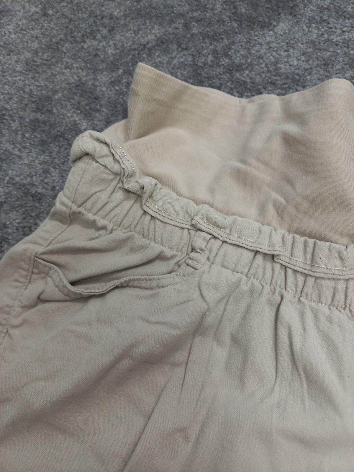 Bavlnené krátke nohavice tmavšej béžovej farby s vysokým pásom na tehu bruško a gumičkou na reguláciu šírky pod bruškom. V super stave. Veľkosť L. Celá dĺžka vrátane tehotenského pásu 57-70cm (dajú...