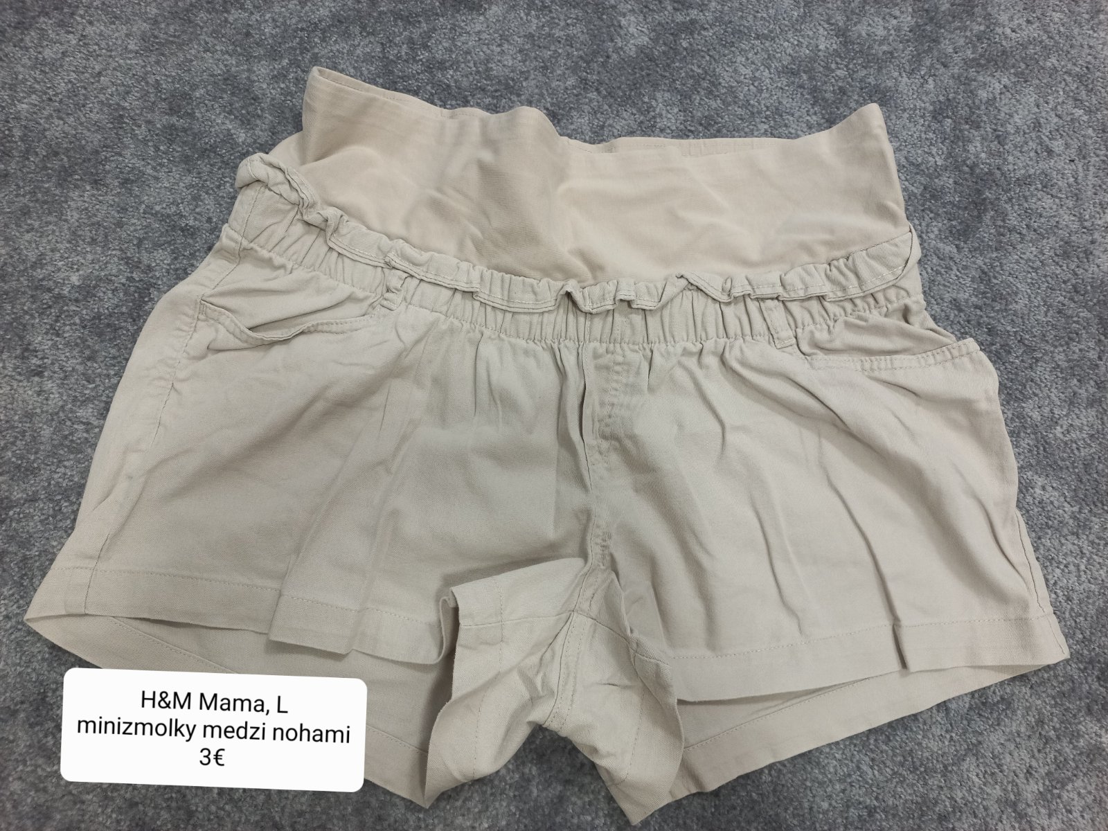 Predam nosene tehotenske sortky znacky H&M, velkost L, pekny noseny stav, medzi nohami maju z nosenia minizmolky.