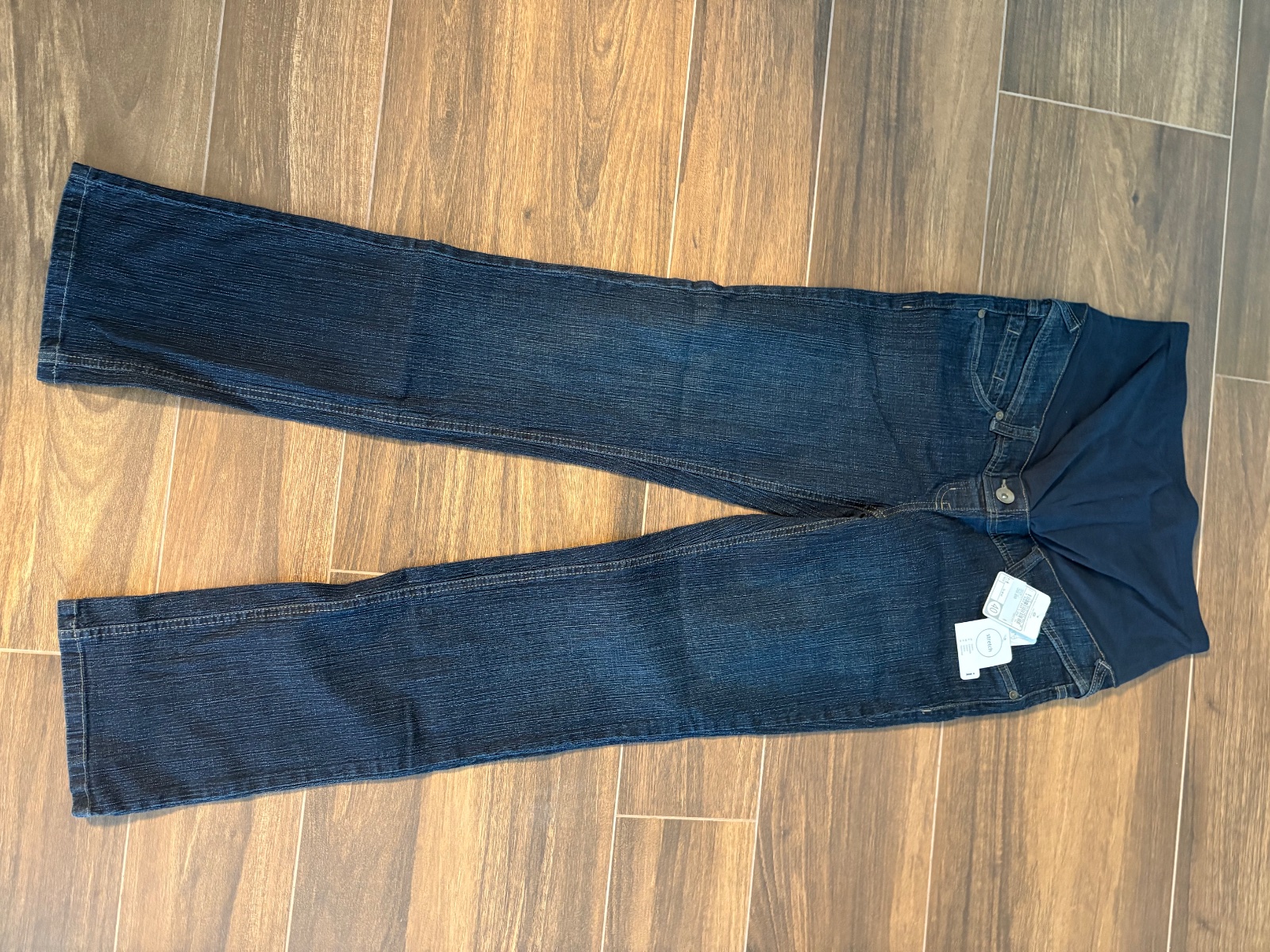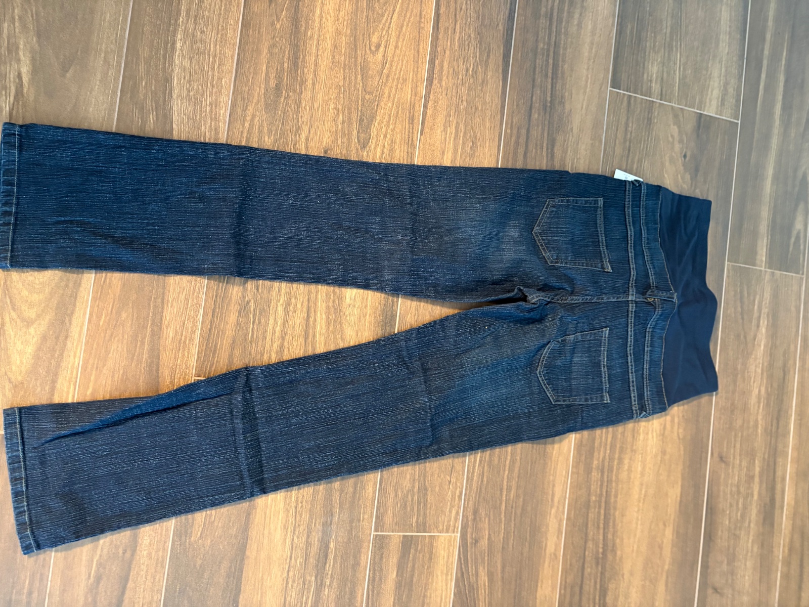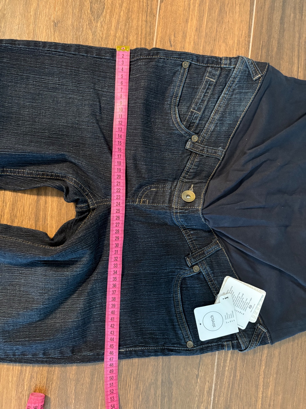 Tmavomodré strečové rovné tehotenské hrubšie rifle, nenosené