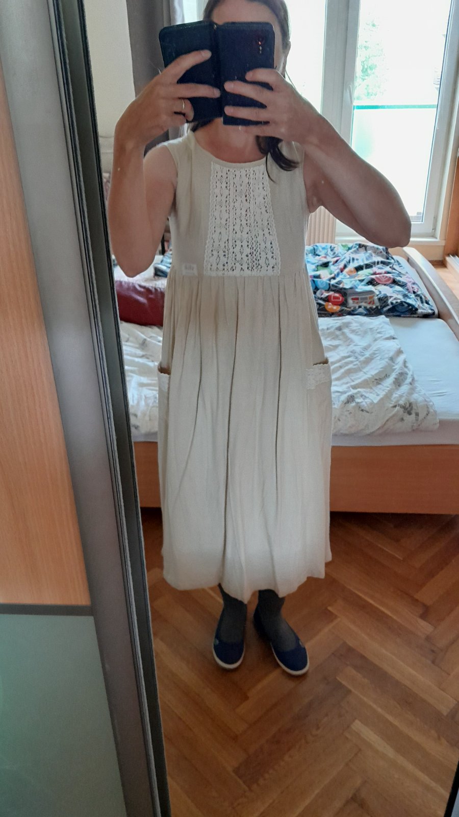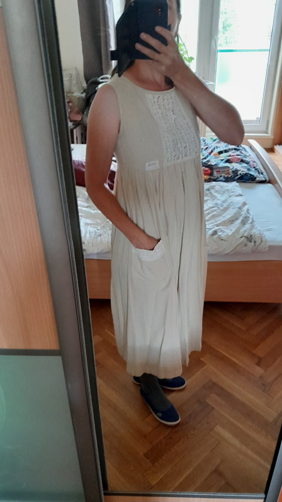 - krásne tehotenské ľanové šaty prírodnej farby, príležitostne nosené vo veľmi dobrom stave, kúpené na Sashe, vhodné na posledný trimester tehotenstva