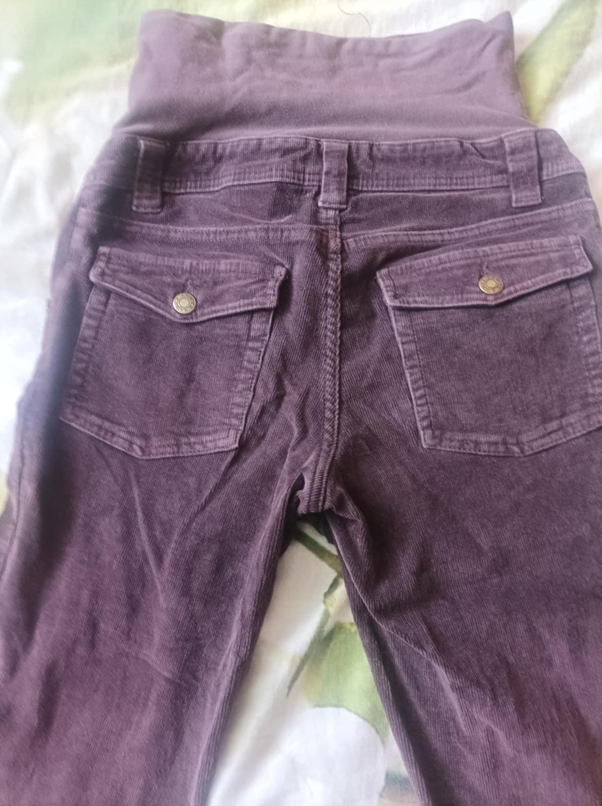 Predám málo nosené tehotenské hnedé menžestrové nohavice, zn H&M mama, velkost S, Vpredu je kombinacia medzestru s upletom s bokom vačkami, vzadu je uplet a našite velke vačky.