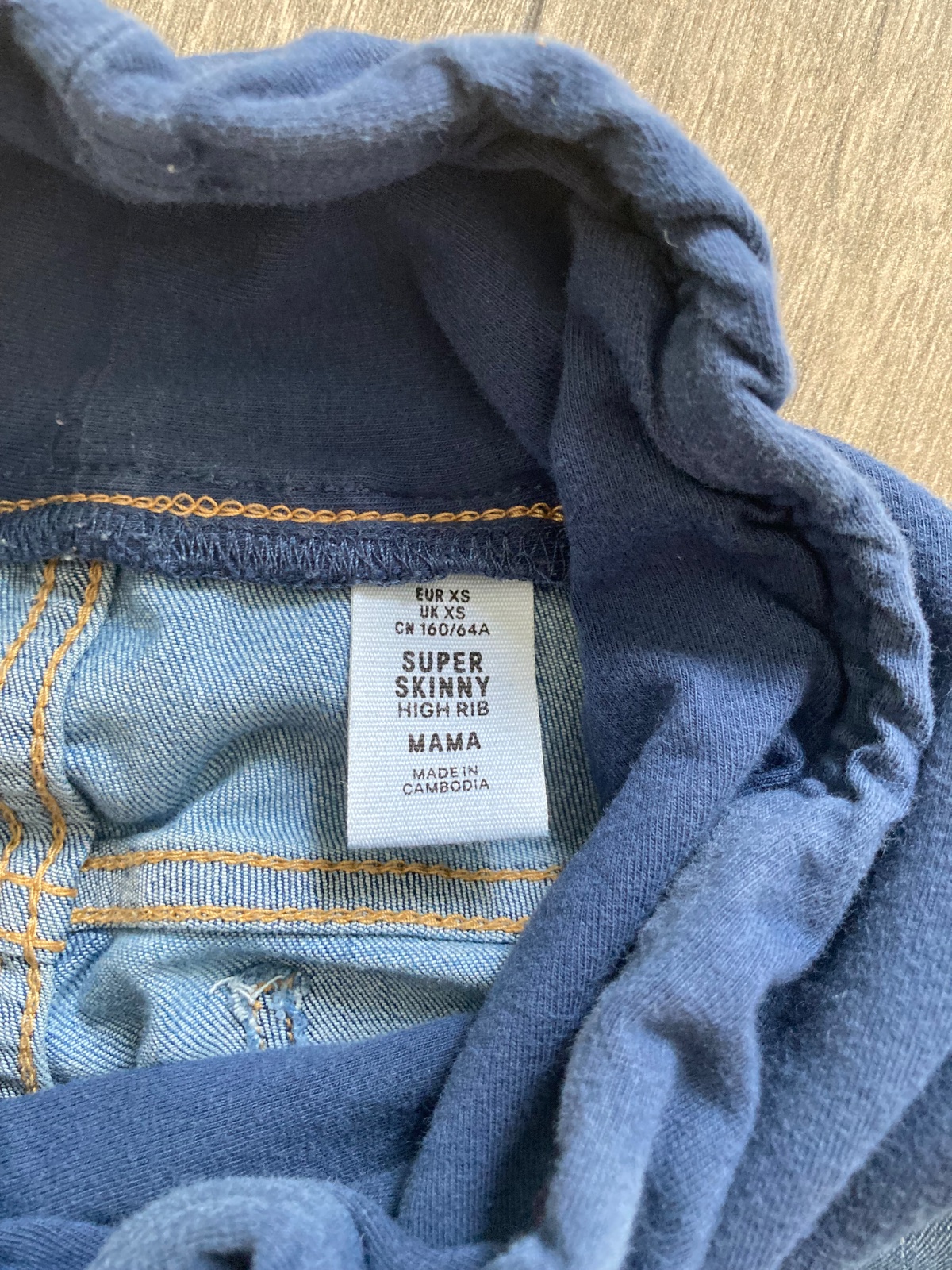 H&M mama perfektné rifle pre tehotné. Moje najlepšie a najkrajšie, a to som pár vystriedala. Super sadnú a sú pohodlné. Úzky strih. Písaná veľkosť 36, ale sadnu na 34 (XS).