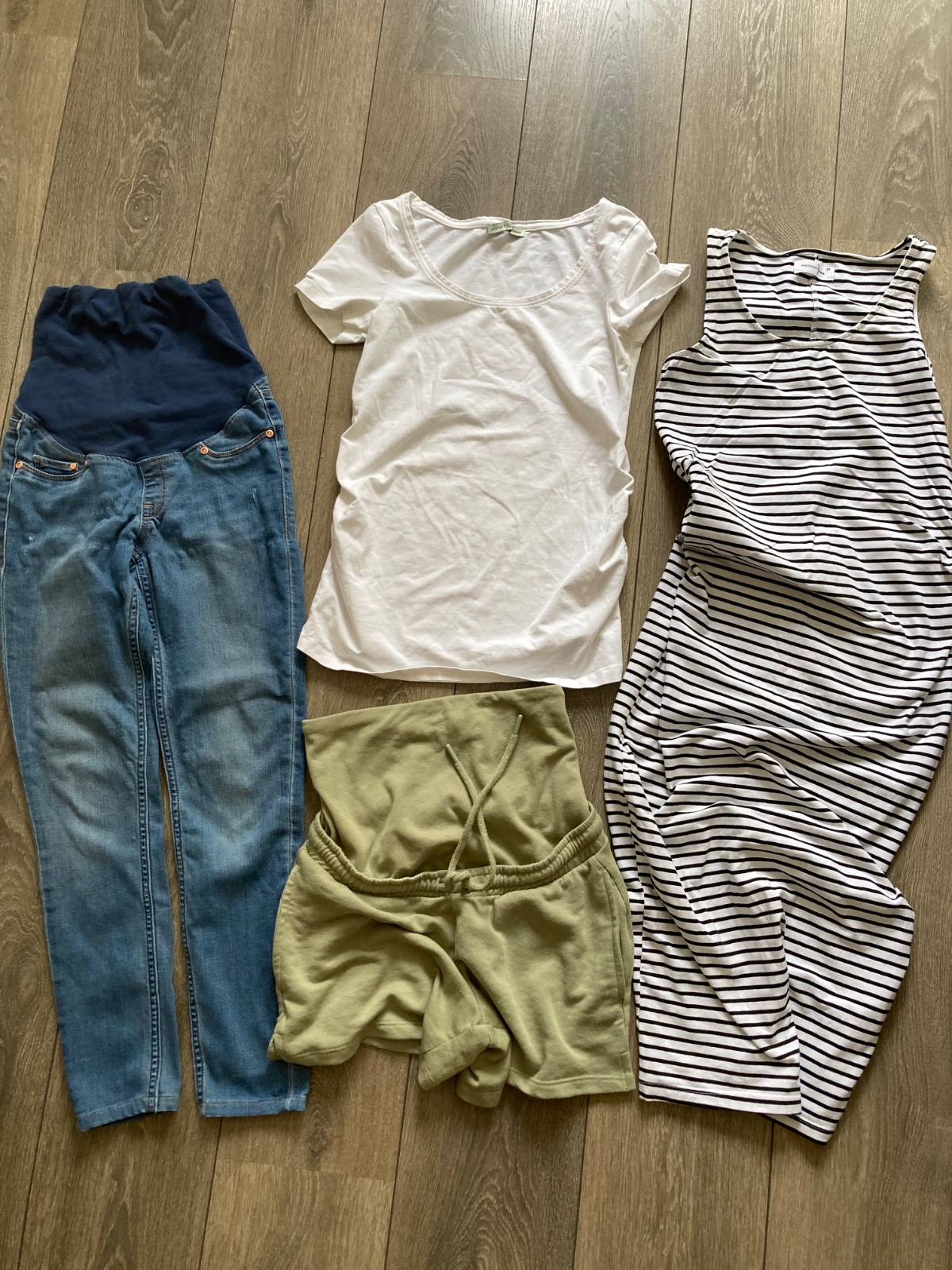 Tehotenské oblečenie veľkosť XS, rifle skracované krajčírkou na moju výšku 156cm. V prípade záujmu pošlem viac foto :)