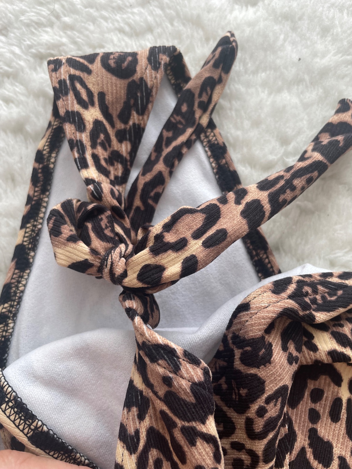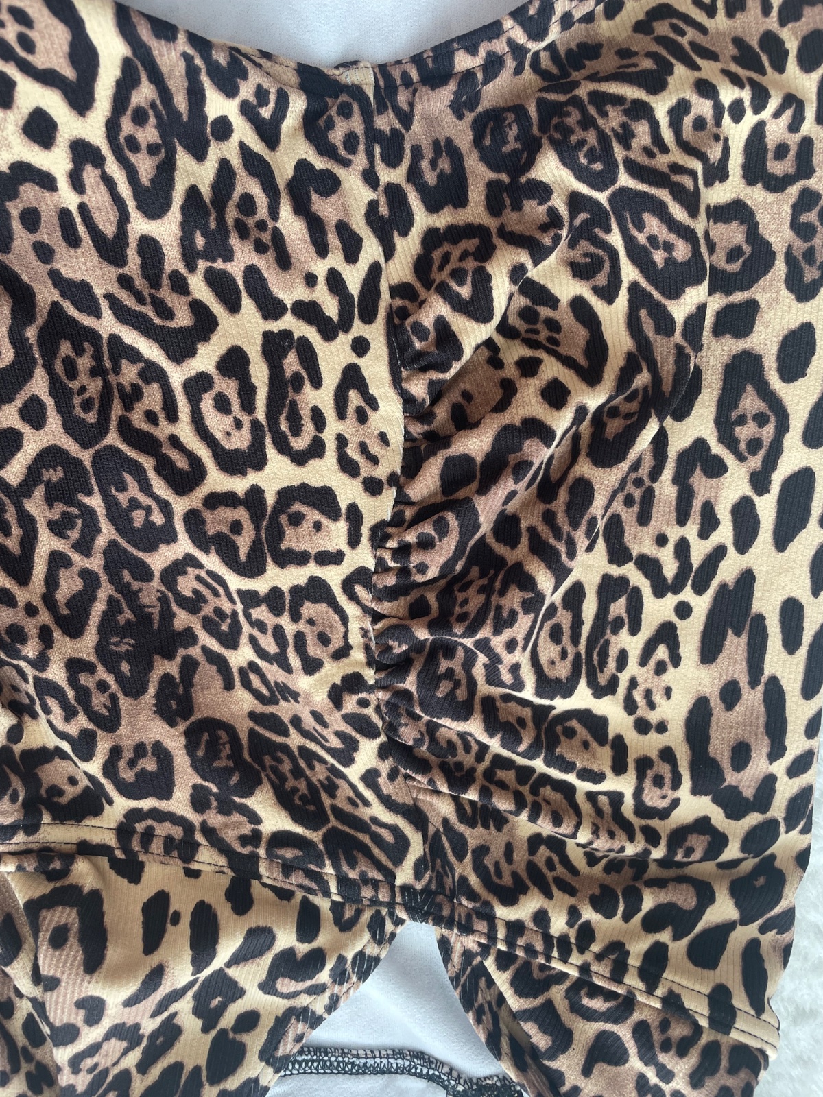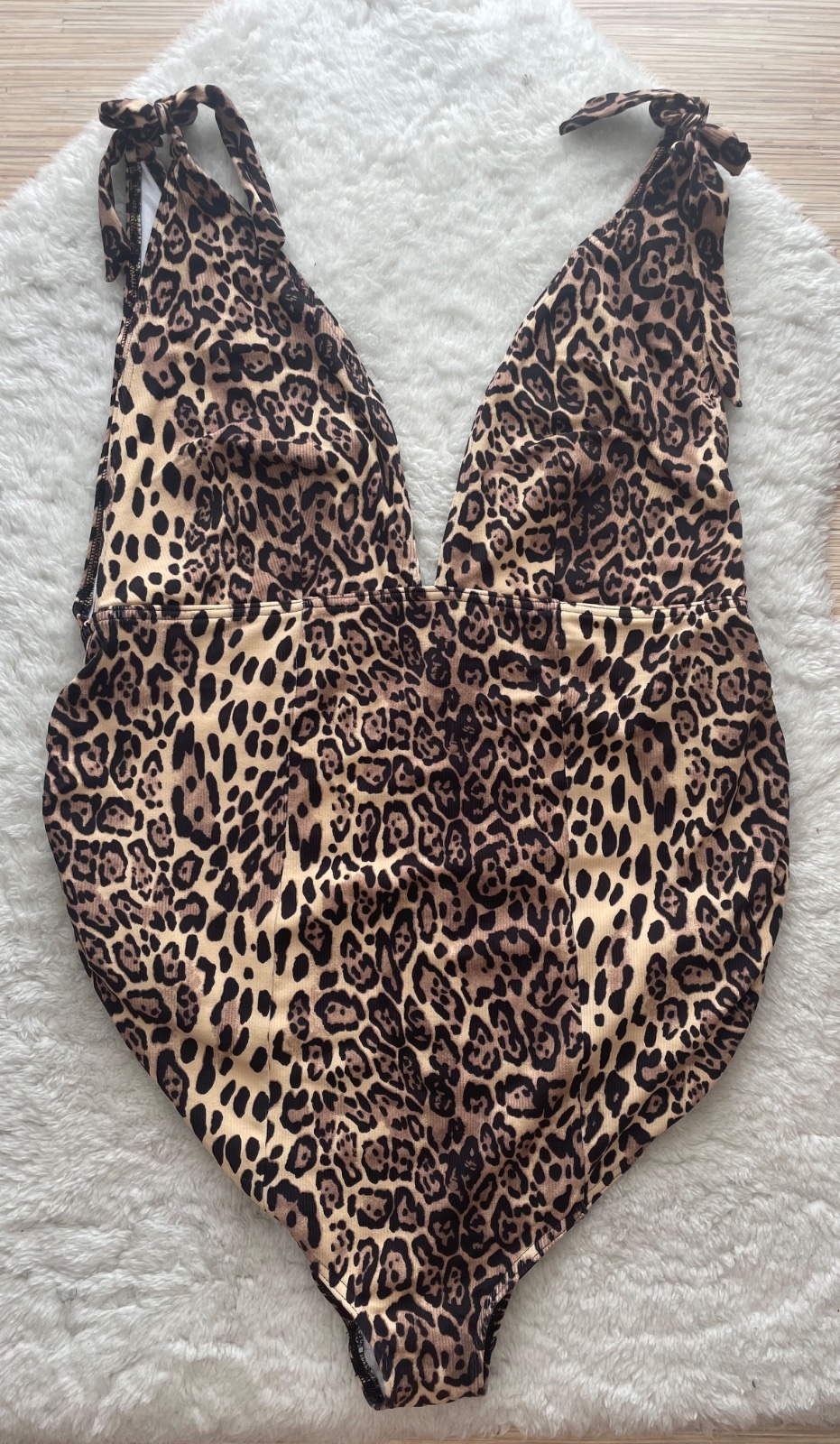 Jednodielne plavky s leopardou potlacou so zavazovanim na pleciach, cize sa sa upravit dlzka. Su bez stitka, ale je to velkost cca 42. Styl i v tehu :) Myslim, ze znacka Asos