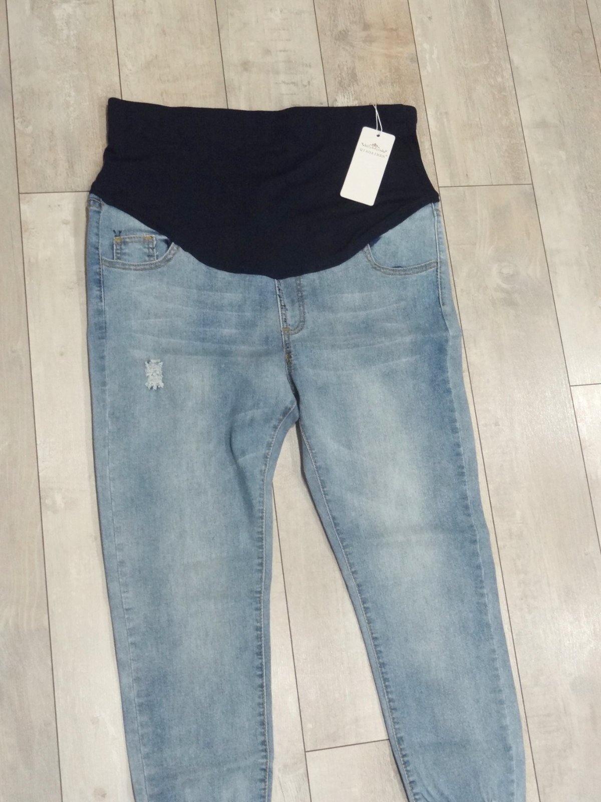 62.H&M Mama štylove tehotenske rifle s tehotenskym pasom a z makkej rifloviny,elasticke,velkost 42,dlzka od pasa dole je 101cm,sirka v pase je cca 44x2cm,sirka stehna pod rozkrokom je od 30x2cm do...