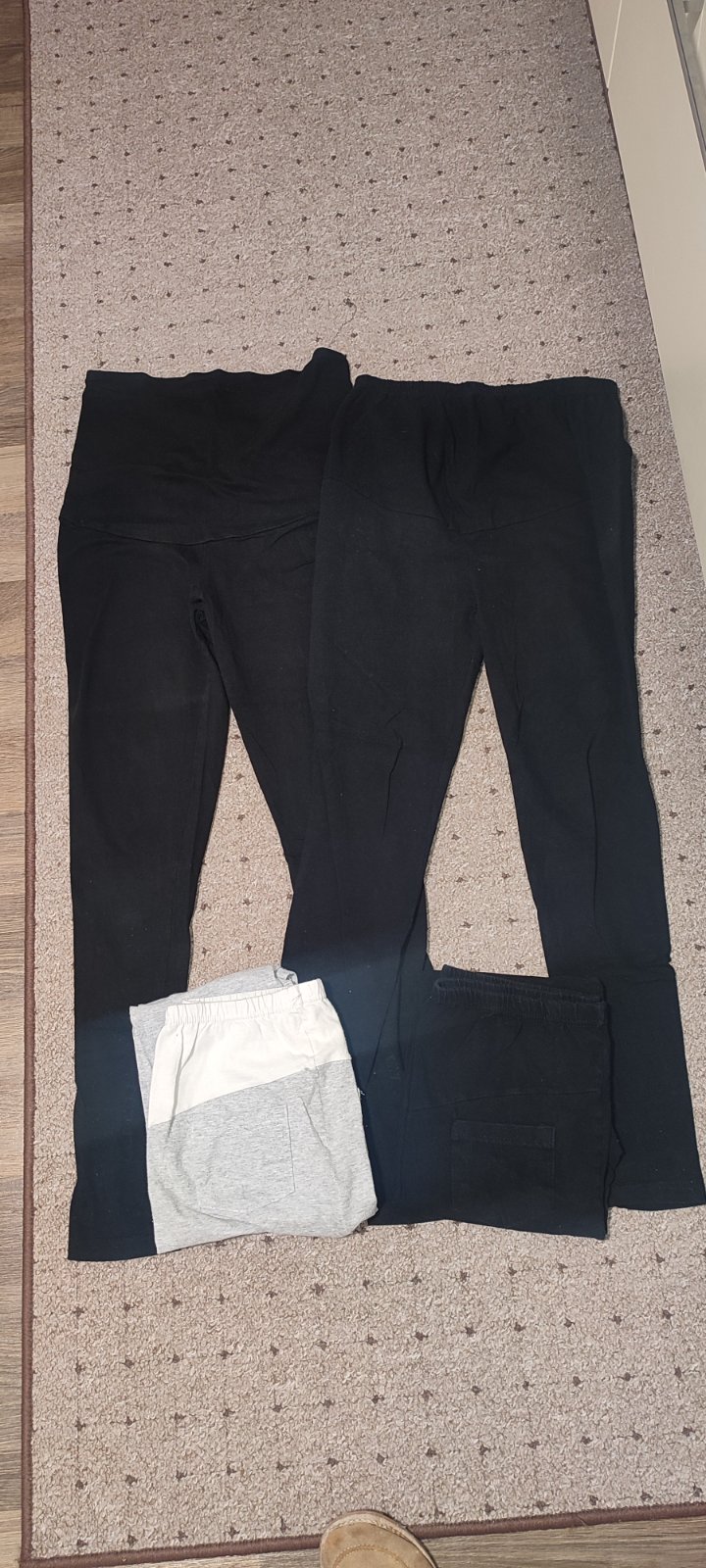 Nosené tehotenské legíny veľkosť M, dva kusy dlhé,dva kusy trojštvrťové. Vhodné na pohodlné domáce nosenie.