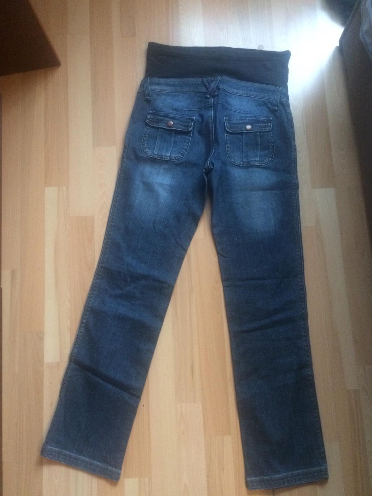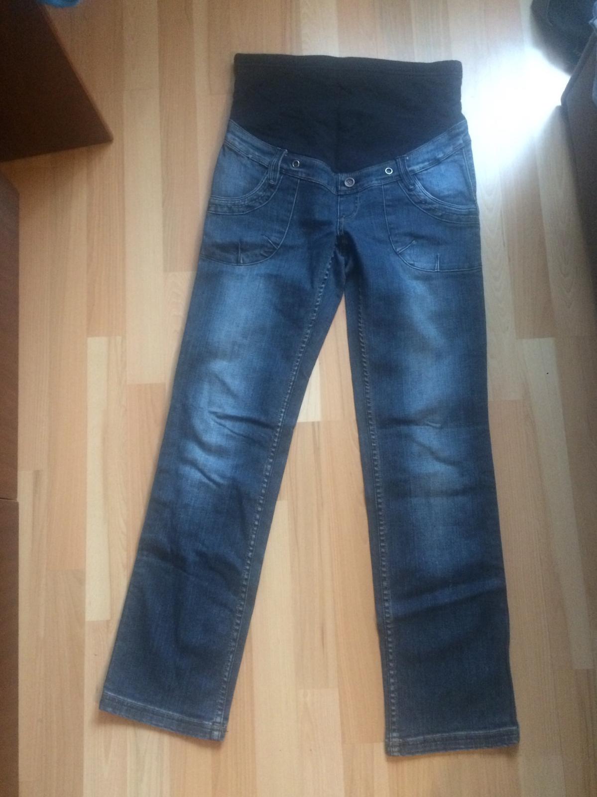 Zachovalé, málo nosené tehotenské rifle rovného strihu. Rozmer pása a vnútorná dĺžka nohavíc je na fotkách. V hornej časti úpletu je regulovateľná gumička.