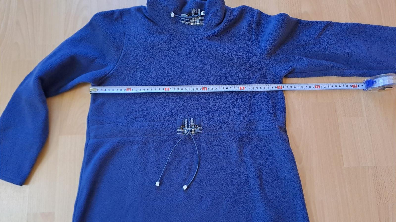 Sťahovanie v páse aj pri krku. Takže použiteľná počas celého tehotenstva. Miery na foto.