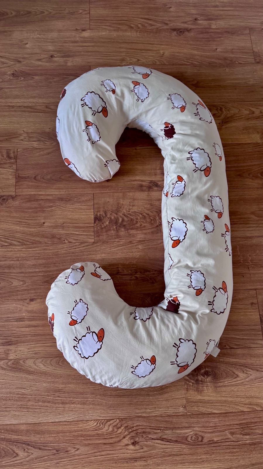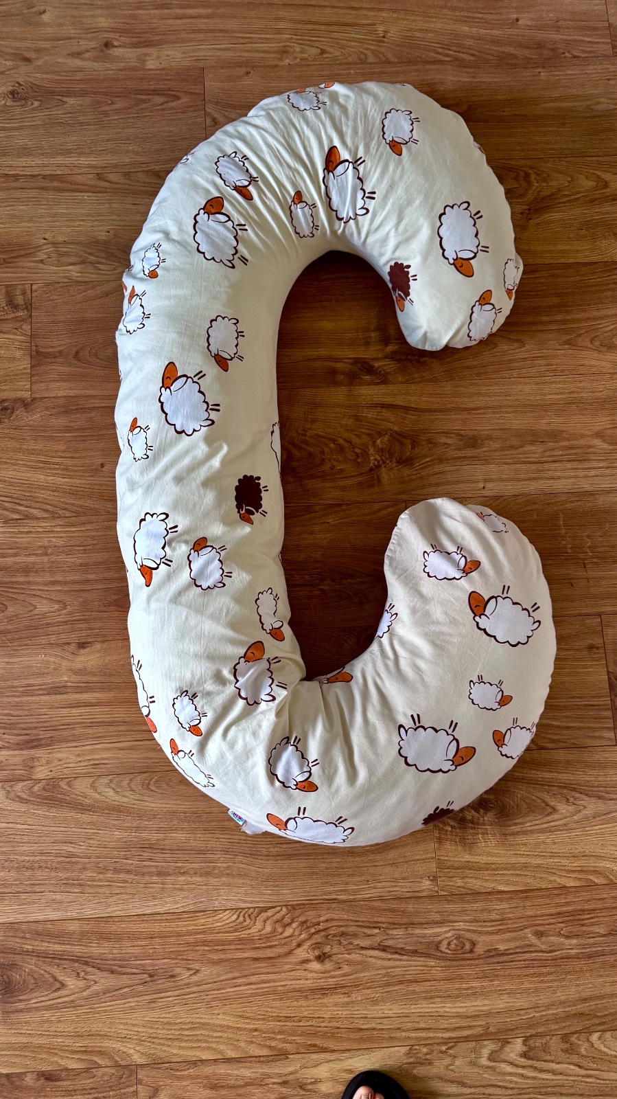 Tehotenský vankúš, z jednej strany minky látka, dĺžka 180cm, nedá sa úplne vyrovnať. Poťah vankúša sa dá prať.