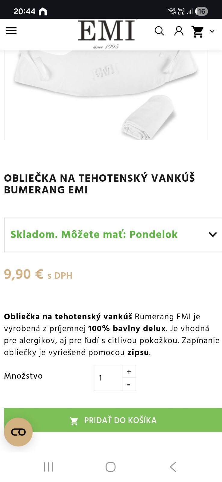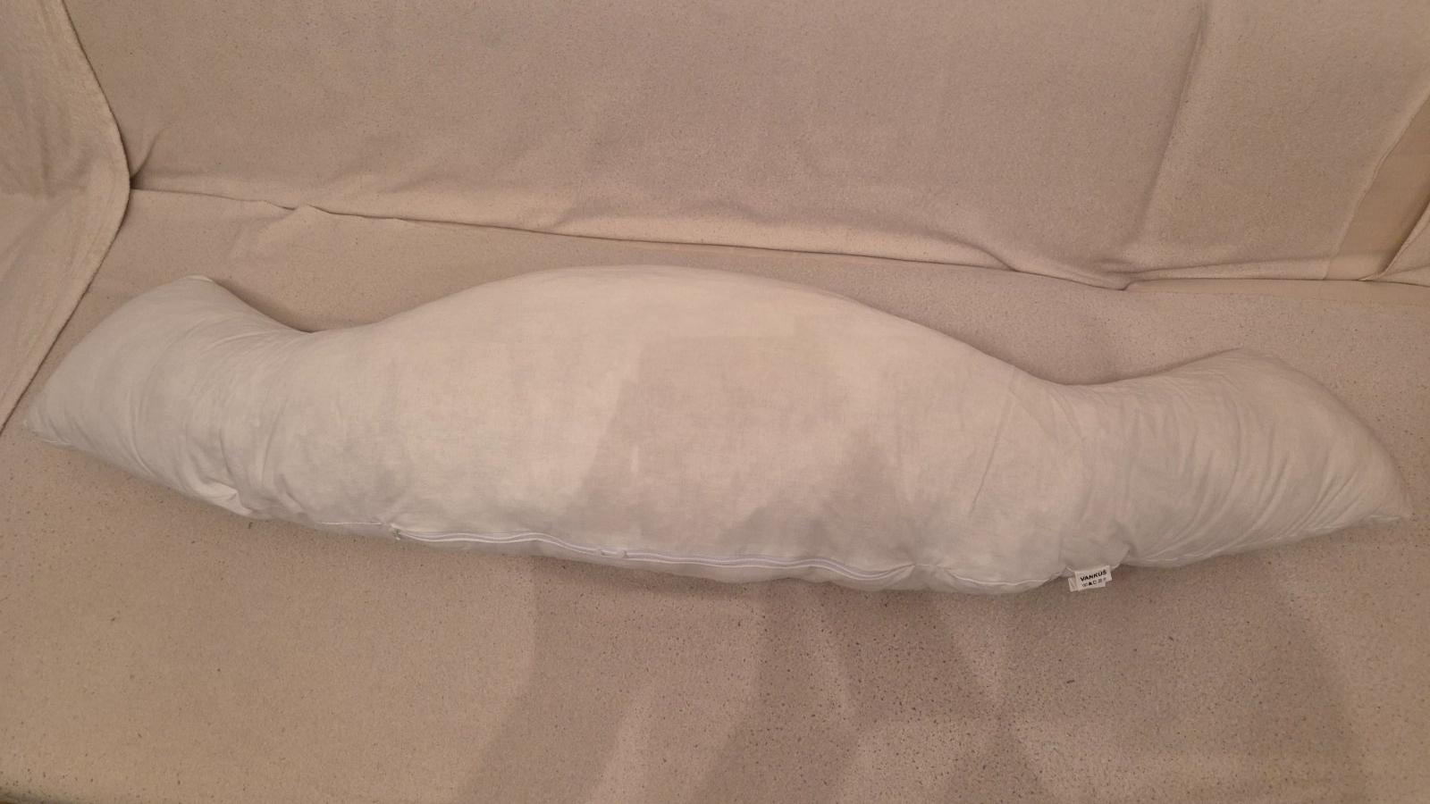 Tehotenský vankúš Bumerang od EMI s obliečkou. Vypraný v dezinfekčnom Sanytole. Je ako nový, nemá žiadne vady. Bol používaný cca 3 mesiace.