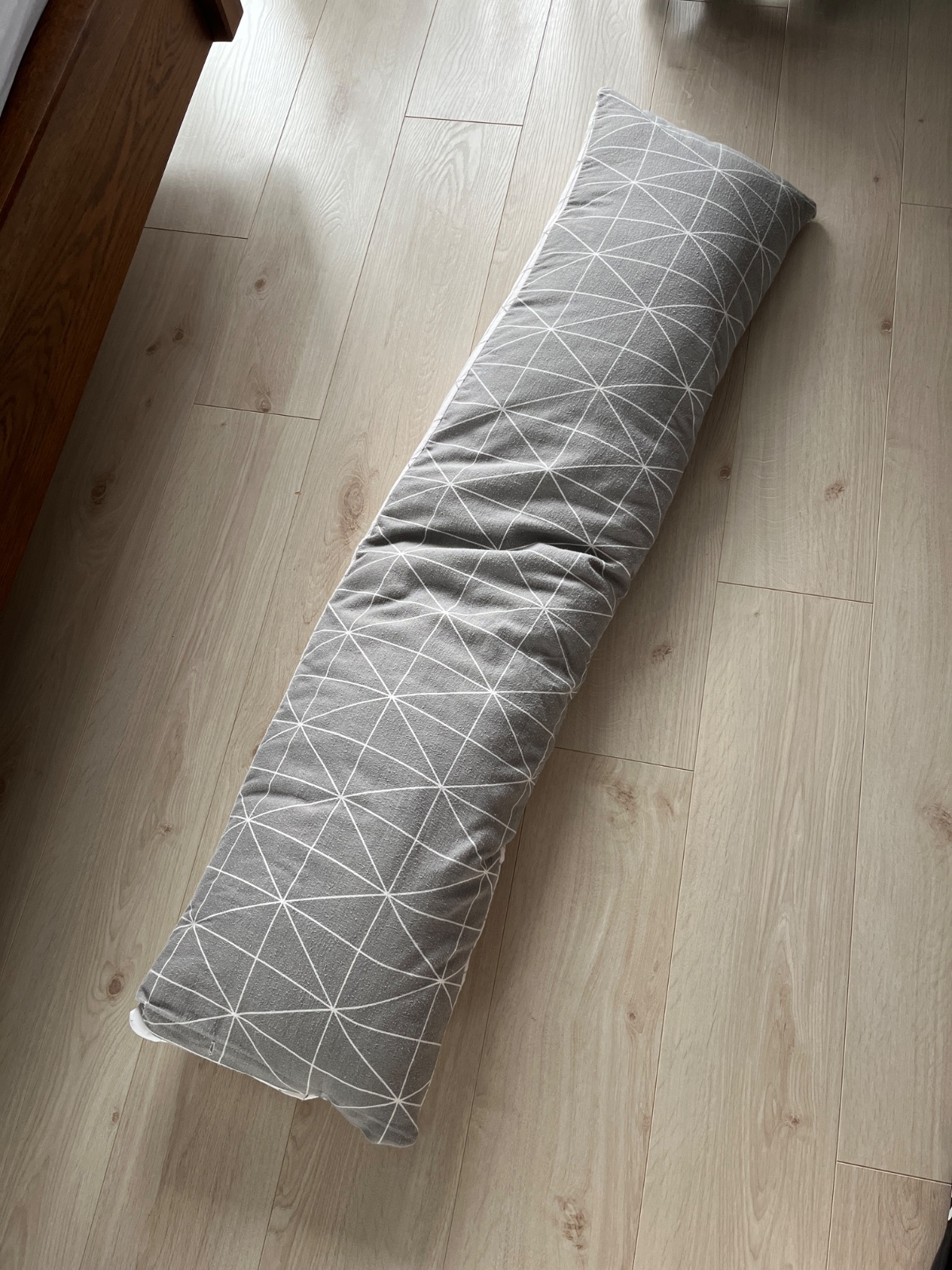 Úžasný tehotenský vankus, po pôrode poslúži aj ako hniezdo. Poťah sa dá vyprať. Po koncoch sú šnúrky a dajú sa dotiahnúť, aby vytvoril poloobluk.