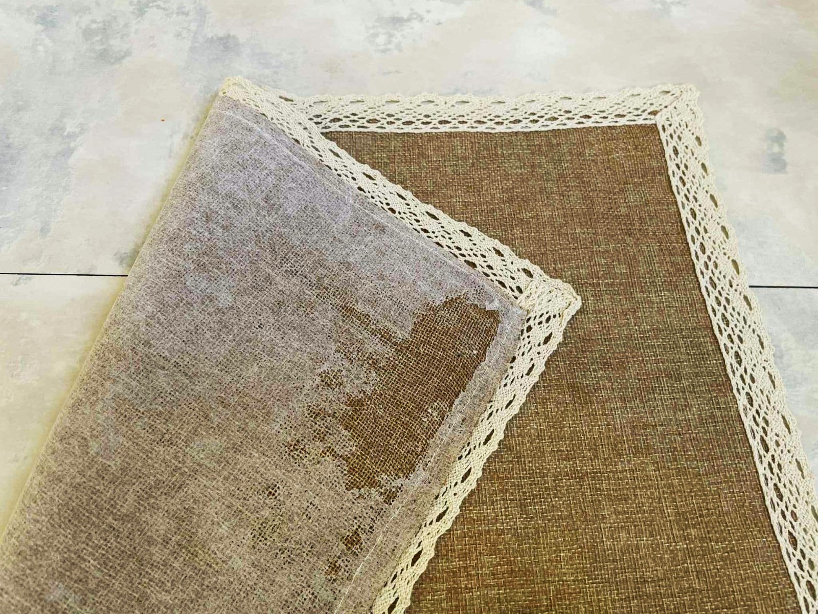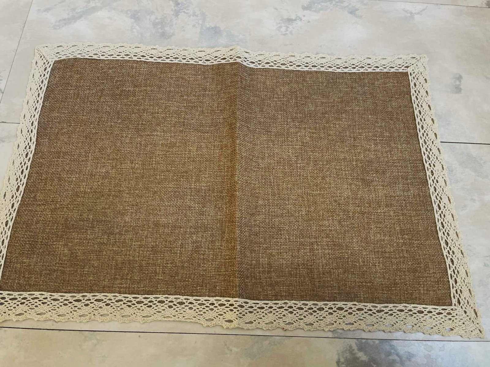 obrus ľanového vzhľadu a štruktúry,30 x 45 cm,obšitý krásnou naturálnou bavlnenou krajkou,na opačnej strane mi zachytila žehlička - viď posl. foto,ale nie je to vôbec vidieť na vrchnej strane,ale upozorňujem