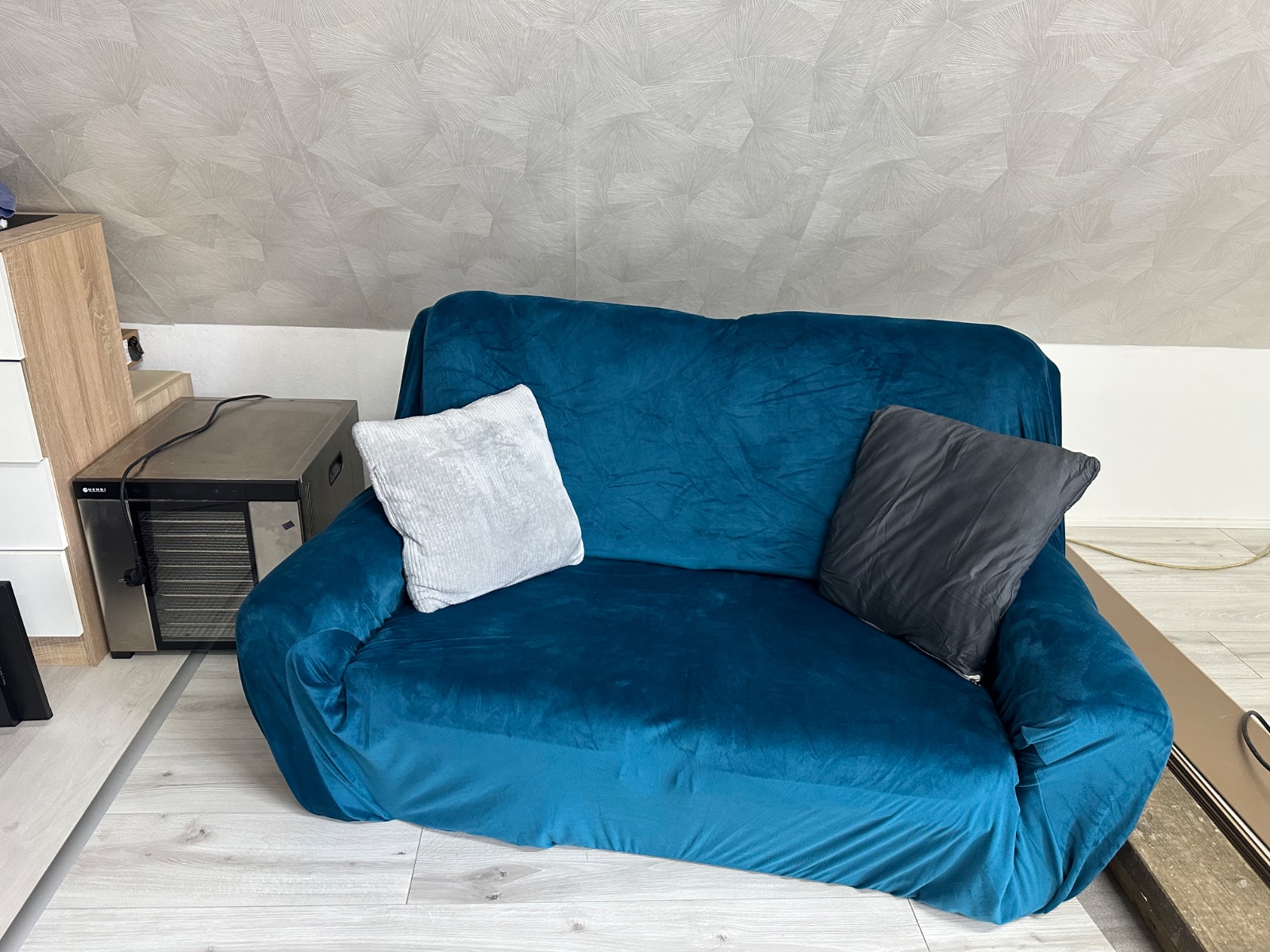 predam len vyskusany potah na 2-sedacku o rozmeroch vyska 89-110cm, sirka 145-185cm. Je kvalitny hrubsi a natiiahne sa aj viac ako je dana sirka. Na moju 2-sedacku je zial velky. Farba tyrkysova vid fotto