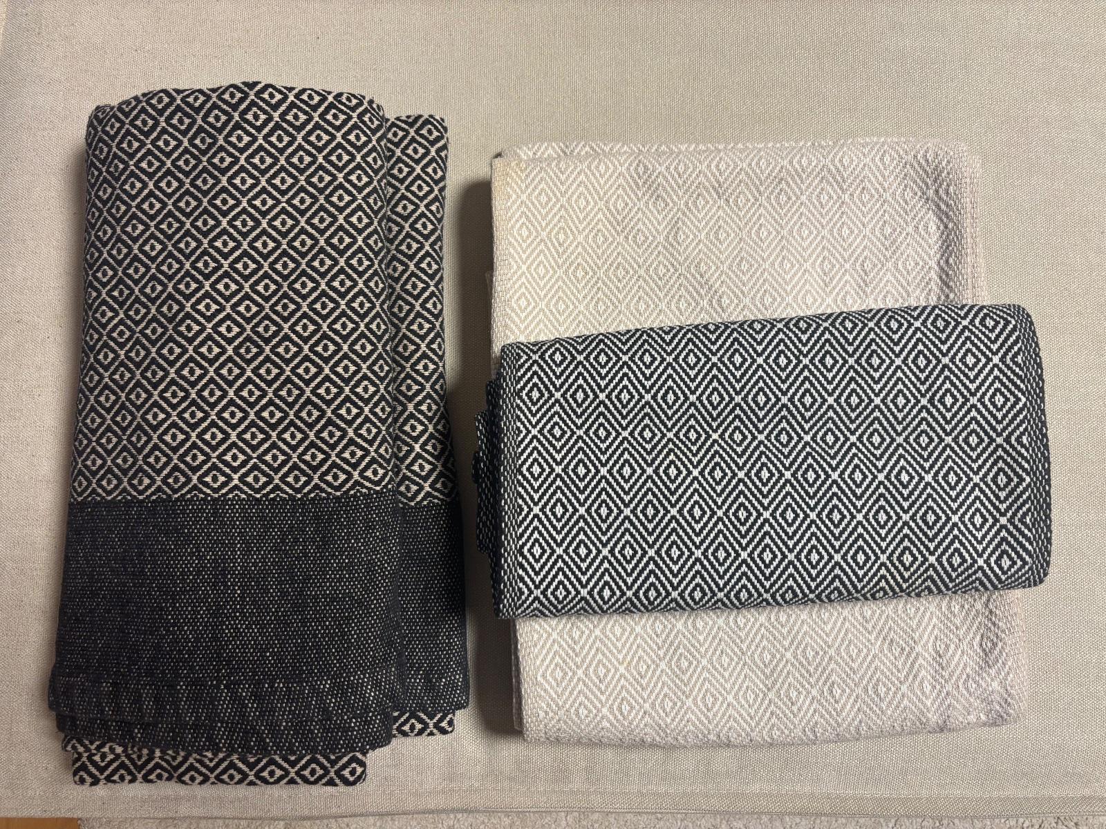 Predám deku značky H&M- rozmery a materiál na foto. A tiež tri obrusy značky IKEA ( rozmery cca 35x150 cm)- jeden čiernobiely a dva béžovobiele.