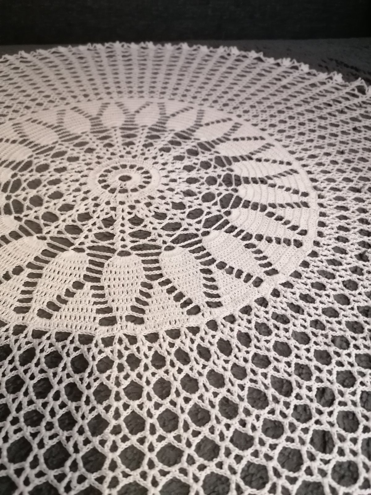 Háčkovaný obrus perieme ručne, stačí rozprestrieť na bavlnenu podložku a prežehliť. Krásny, jemný, ručná výroba.