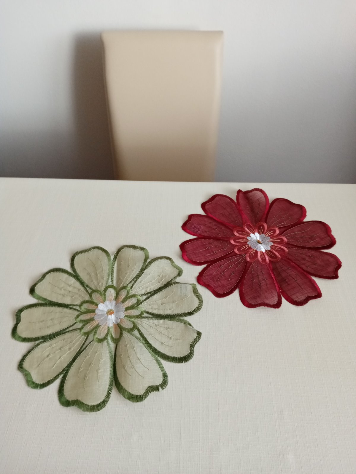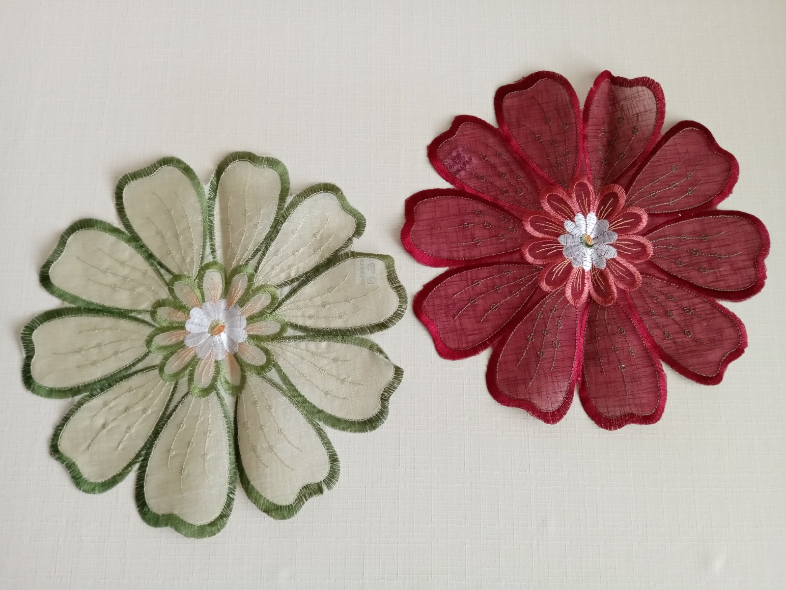 Okrasné prestieranie na stôl alebo pod kvetináče. Priemer 30 cm. Cena je za obe spolu.