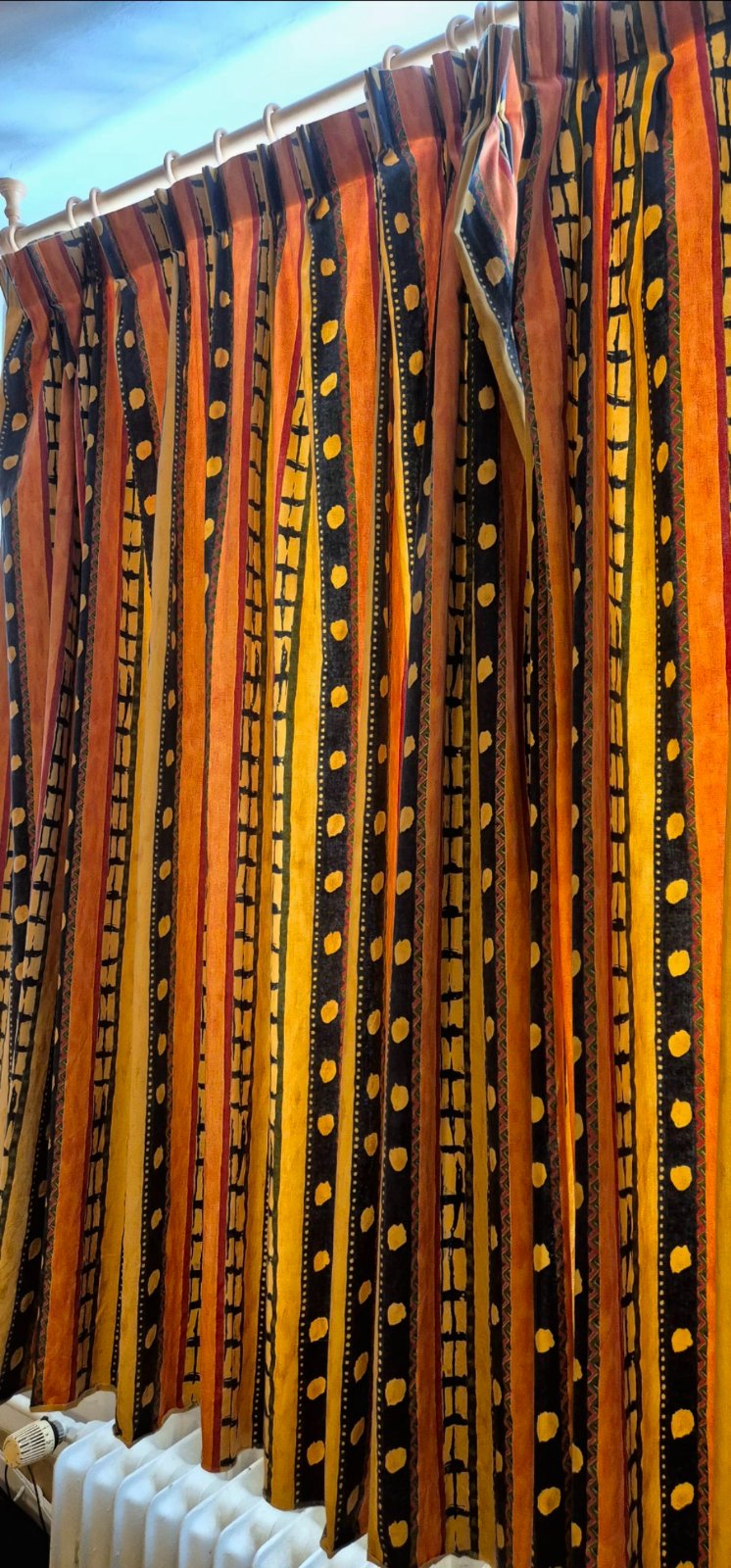 Ponukam na predaj zaves oranzovo-tehlovej farby. Velmi malo pouzivany. Bez poskodeni. Ako novy. Rozmery: 240 cm (dlzka aj s putkom) x 70 cm Pocet: 8 ks Cena za kus + postovne.