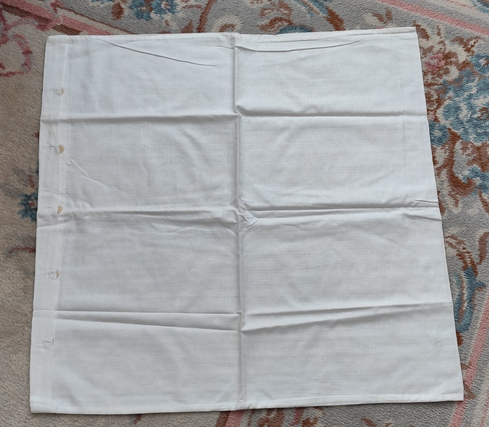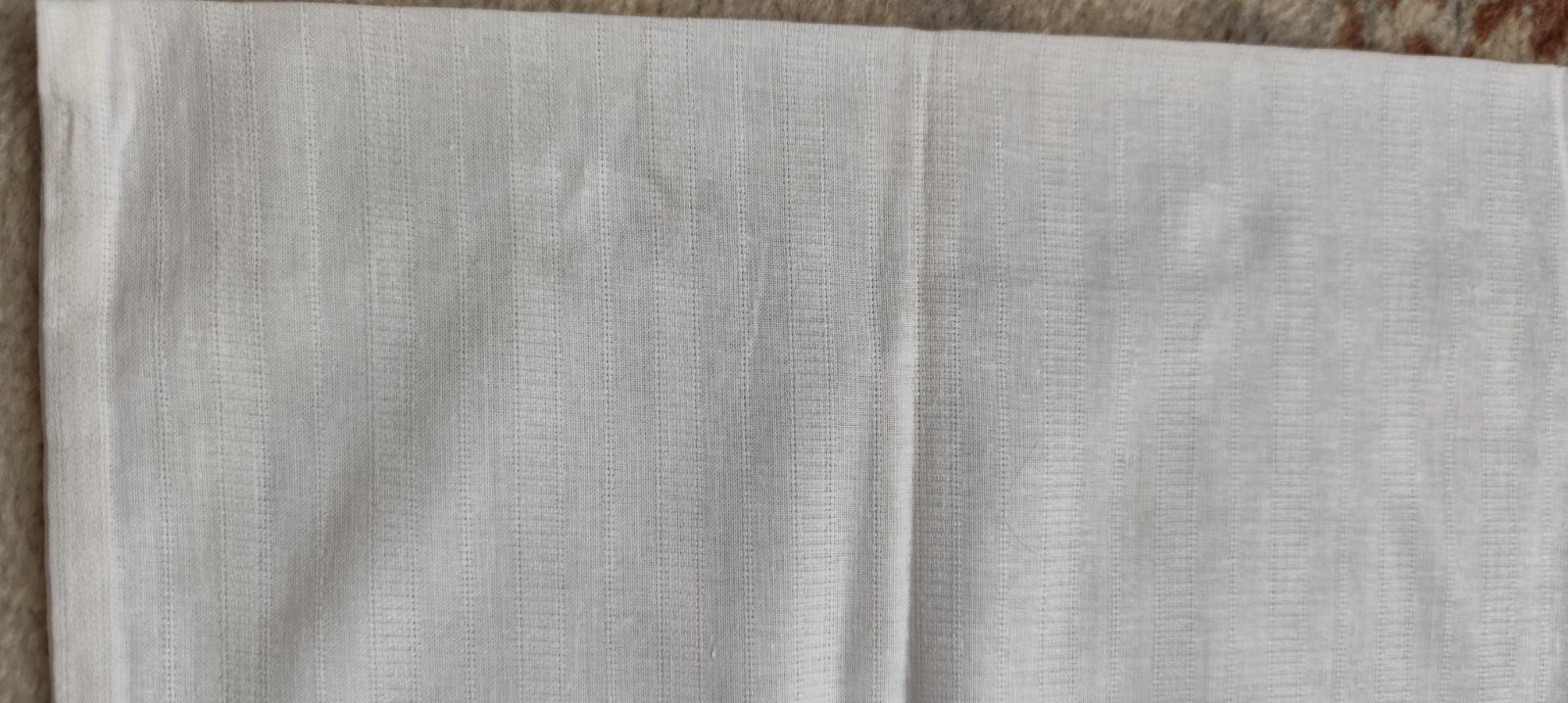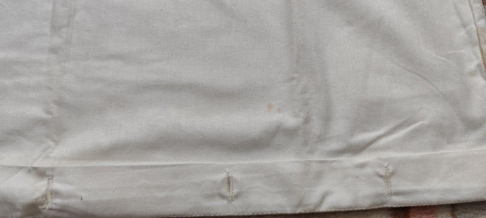 Predám bavlnene postelne oblečenie. Rozmer je 70cm x 67-70cm. Nepouzila som ho, len z toho ako stalo, je na niektorom fliacik na prelozeni. Treba ich oprat, mozno to zmizne. Cena za kus je 2,50€. Mam tri kusy s takym pasikavym vzorom. Je to nafotene a aj tie fliaciky. Jeden kus mam hladke biele.
