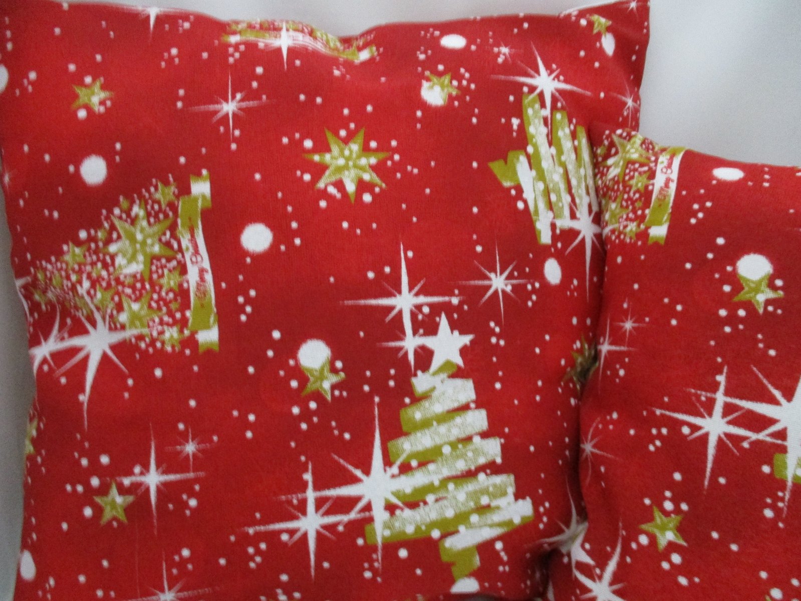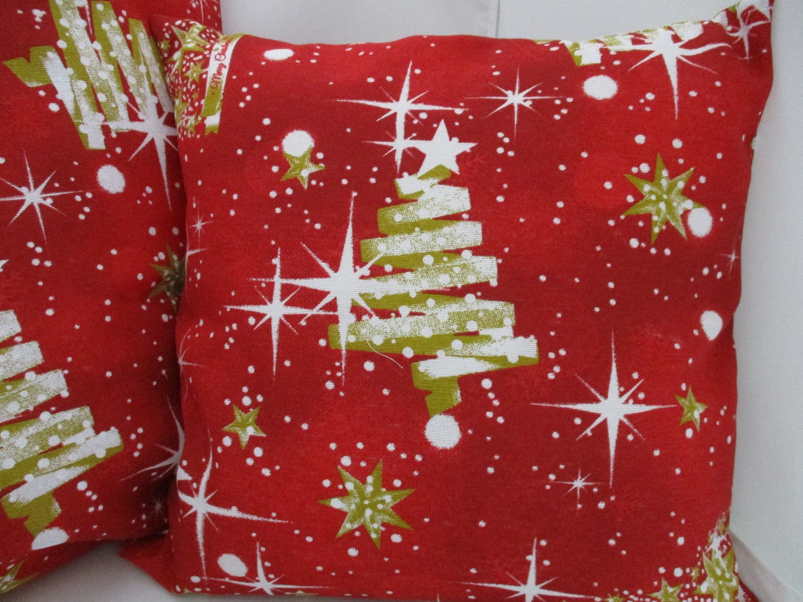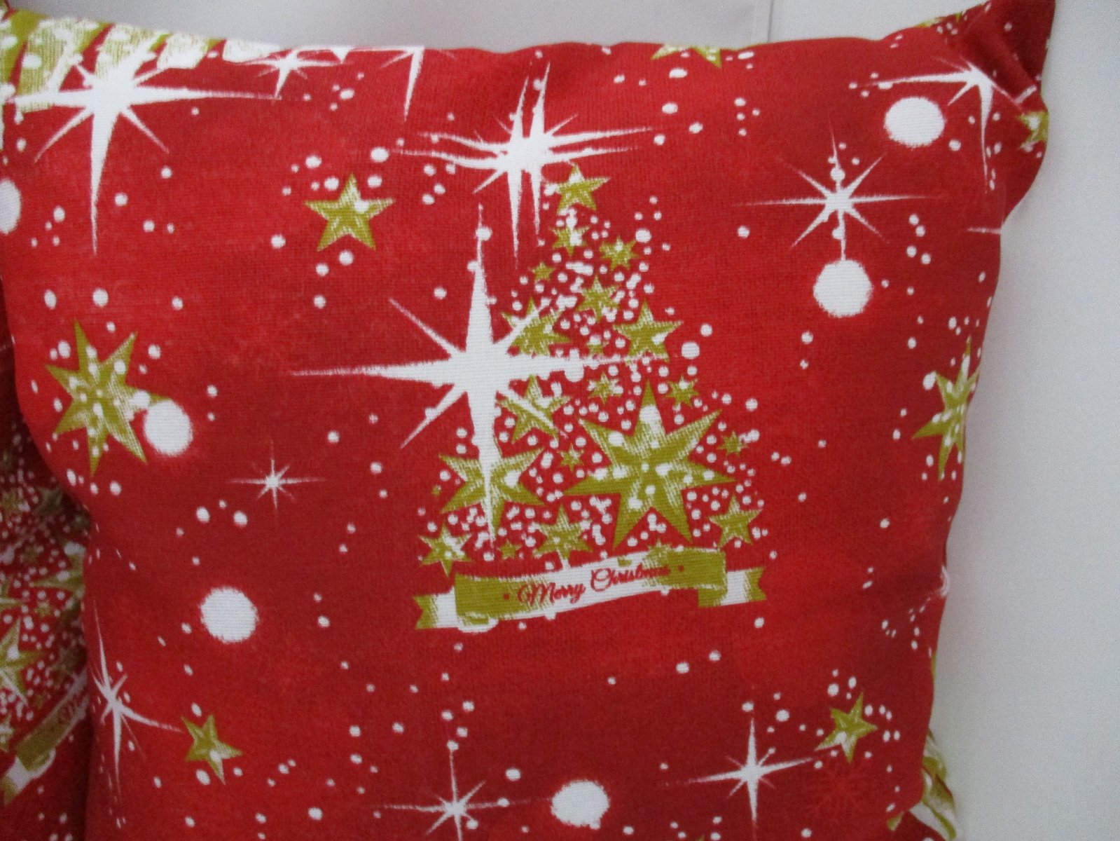 Vianočná obliečka v dvoch veľkostiach, ušitá z kvalitnej pevnej zmesovej bavlnenej látky v červeno-bielo-zlatej kombinácii farieb. Zapínanie je na zips v spodnej časti obliečky.