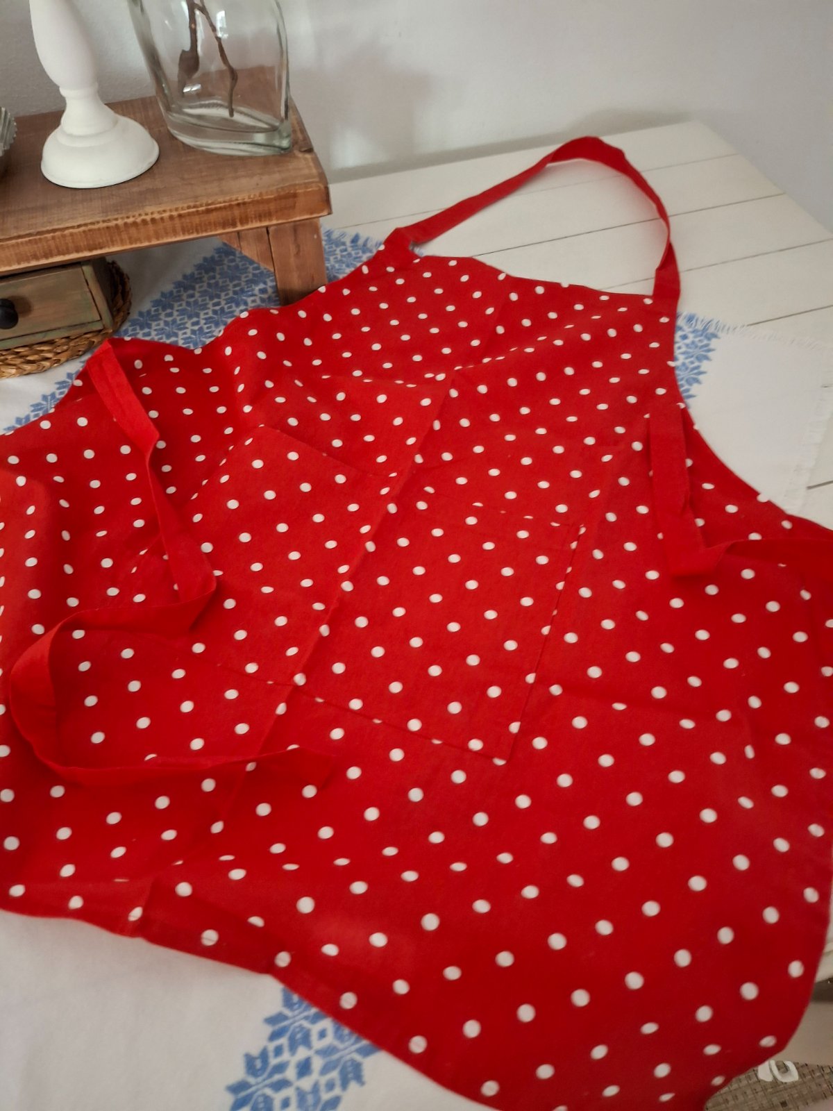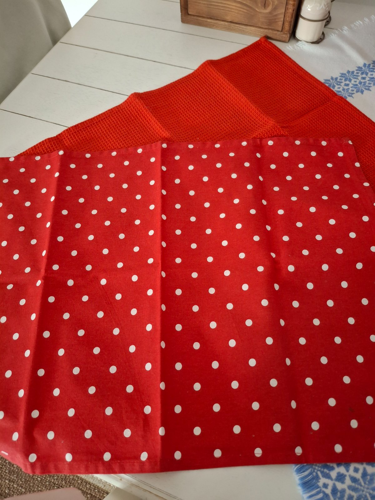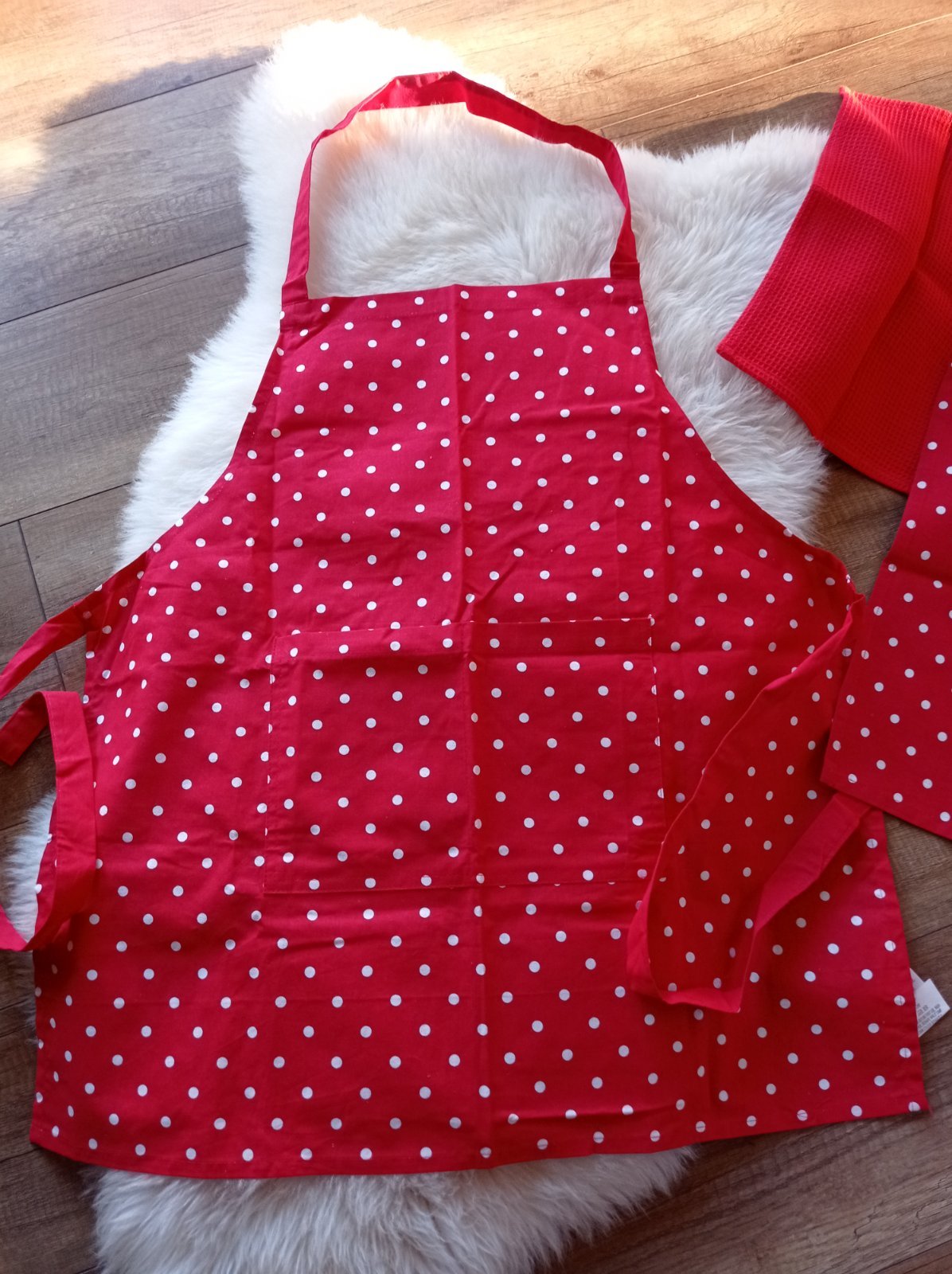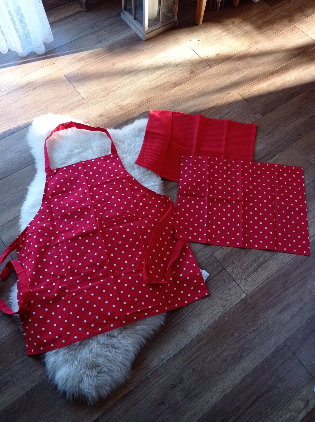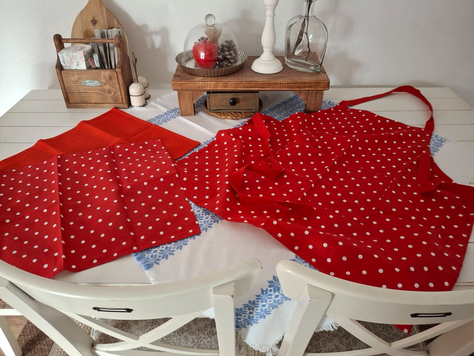 Vysokokvalitný set 100 % bavlna: dámska zásterka, 2x utierka. Cena spolu. ❤️🤍 super stav iba dekoracia u nas.
