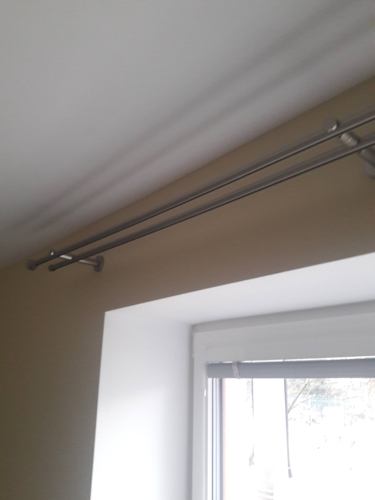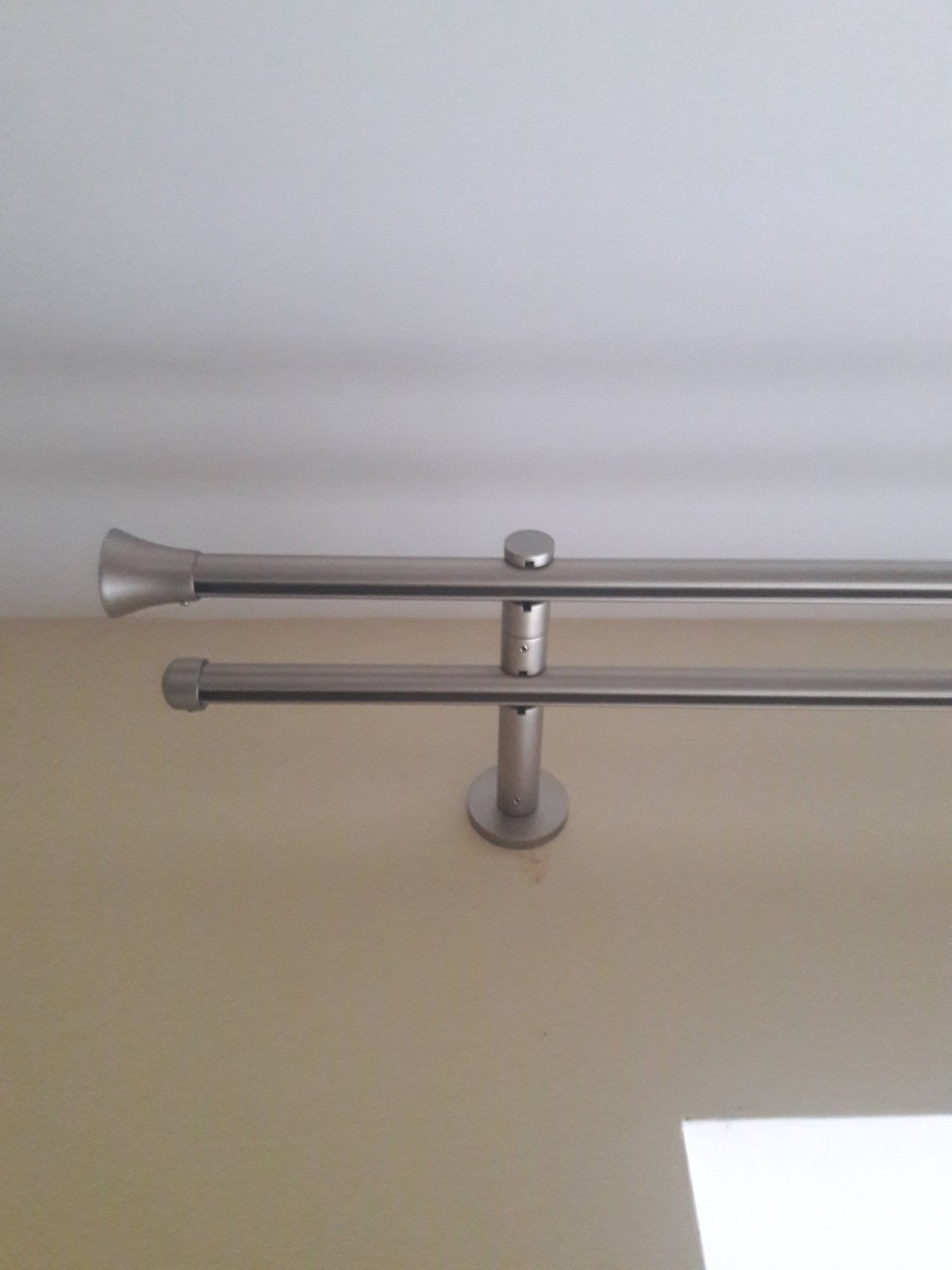 Dĺžka garniže je 240 cm, priemer 2 cm, vzdialenosť prvej tyče od steny po namontovaní je 8 cm a druhej je 14 cm. Predáva sa s kompletom potrebným na namontovanie a s koncovkami. Na predaj sú 3 ks takýchto garniží. Cena je uvedená za 1 ks dvojitej garniže. V prípade potreby je možnosť odberu ešte jednej garniže s rozmerom 220 cm (túto predám len v prípade, ak odberateľ troch garniží 240 cm, by potreboval ešte aj tú štvrtú). Garniže je možné skrátiť podľa potreby s pílkou na kov. Osobný odber v Košiciach.